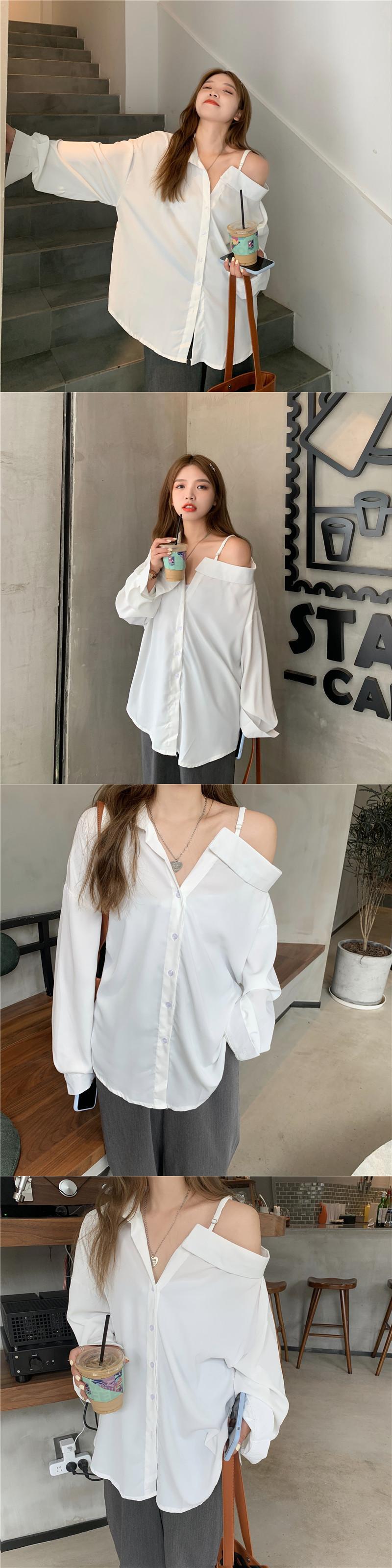 ホワイトシャツ スプリングストラップレススタンダード ロング レトロ 春物 長袖 ワンナンバー84880315102