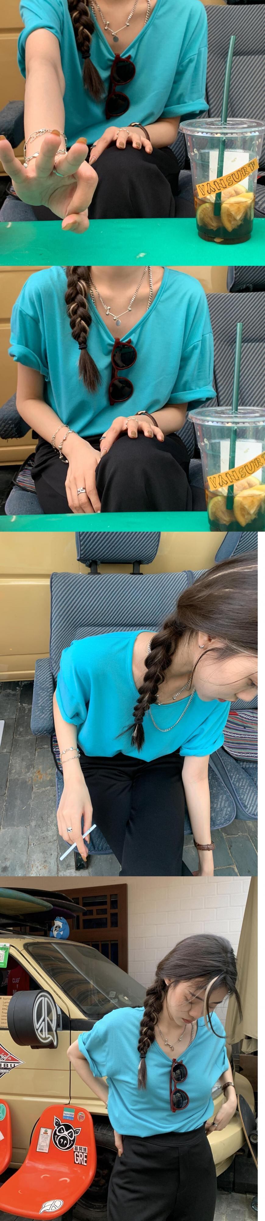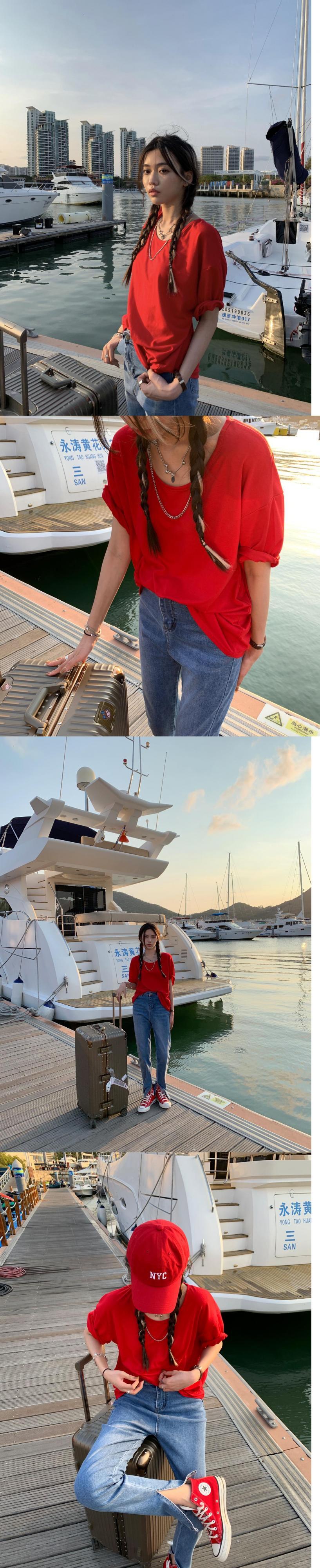 夏服ルーズ韓国ファッショントップス トレンドソリッド カラーゆったりTシャツ コットン 夏物 ピュア ソリッドカラー スタイル MONROE75637585744