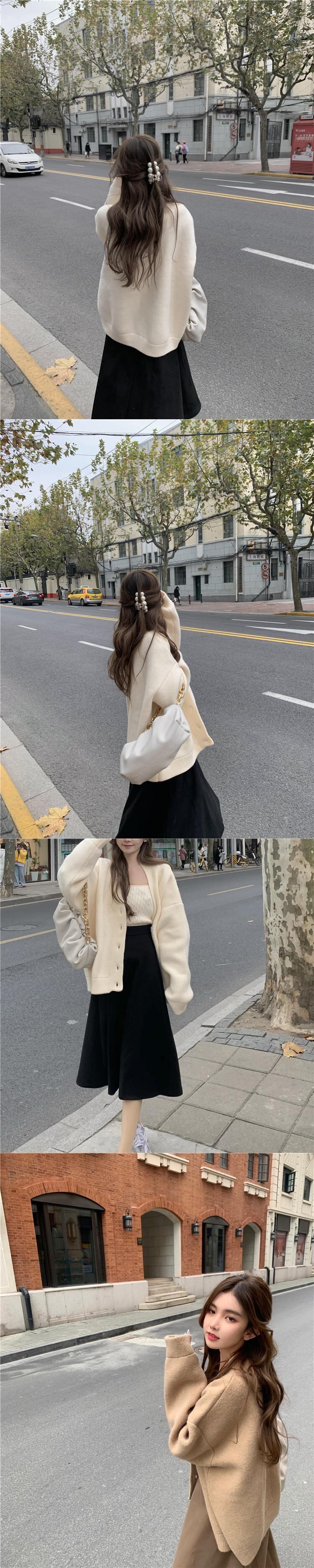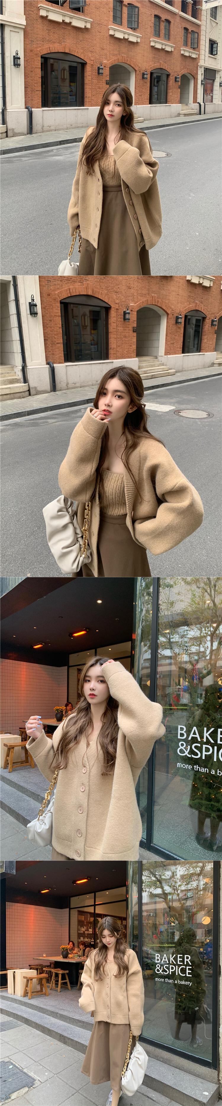 スプリング秋物ホワイトセーター レディース韓国ファッションルーズニットカーディガンジャケット 春物 オータム スタイル SPM82225034419