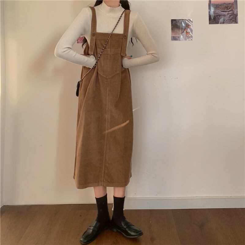 ルーズスリムコーデュロイワンピーススプリング韓国ファッションスタイルノースリーブレディース 春物 SPM79605030882