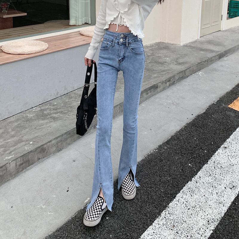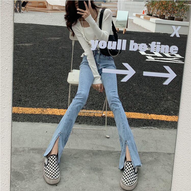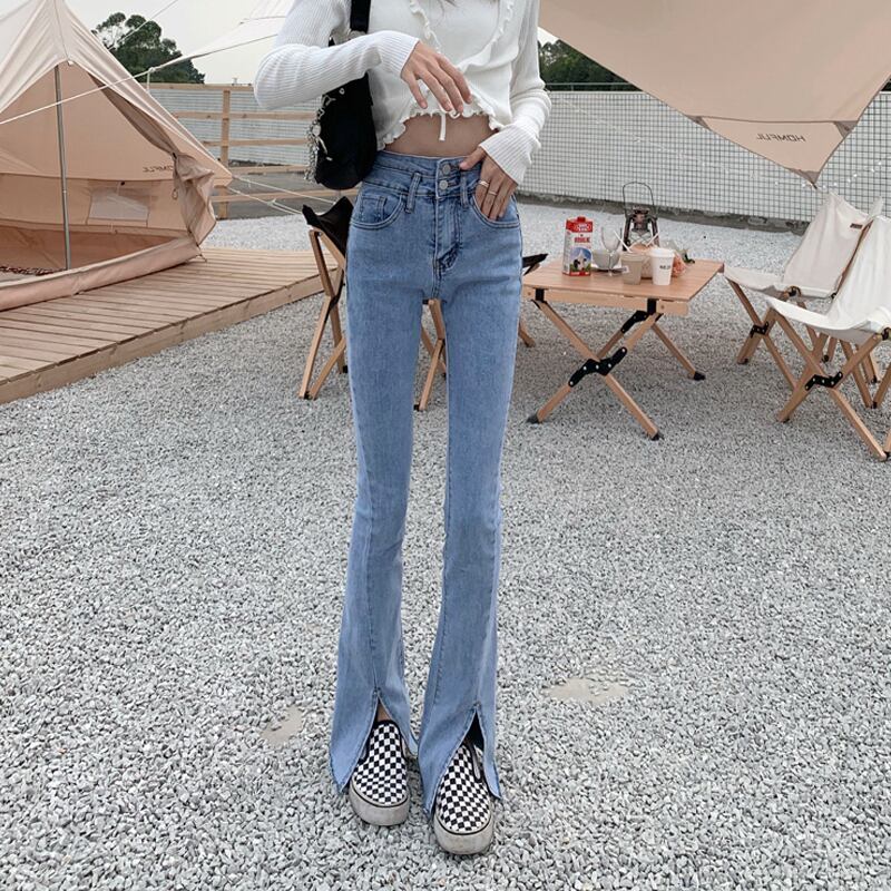 スリットジーンズ ハイウェストウェストスリムフィット夏服パンツ 夏物 ウエスト SYJ75029437995