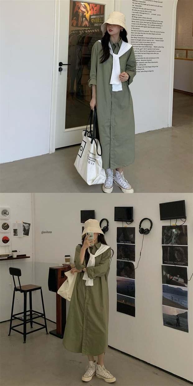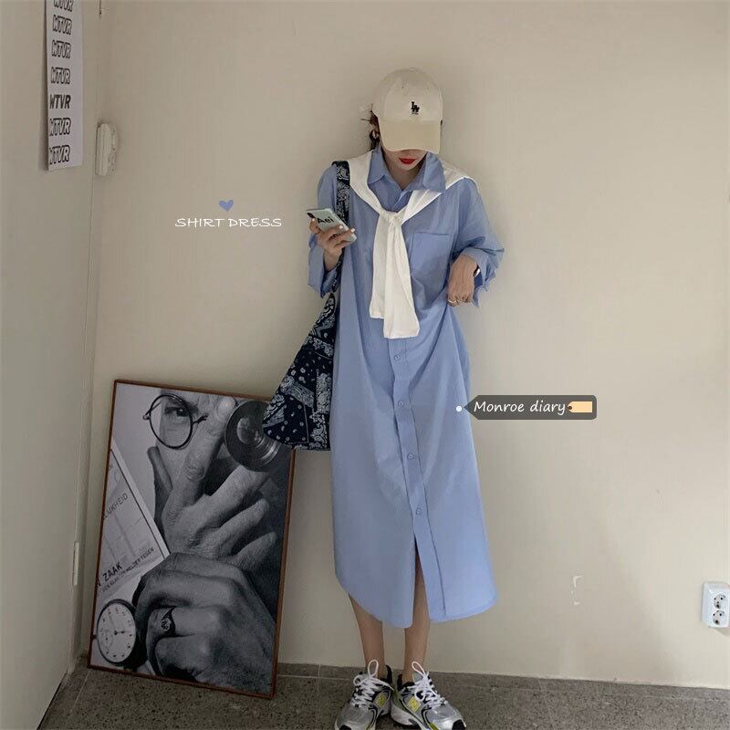 シャツ スカート 夏服韓国ファッションスタイルルーズ薄手ミニ ワンピースワンピース 夏物 ミドル丈 MONROE1235396