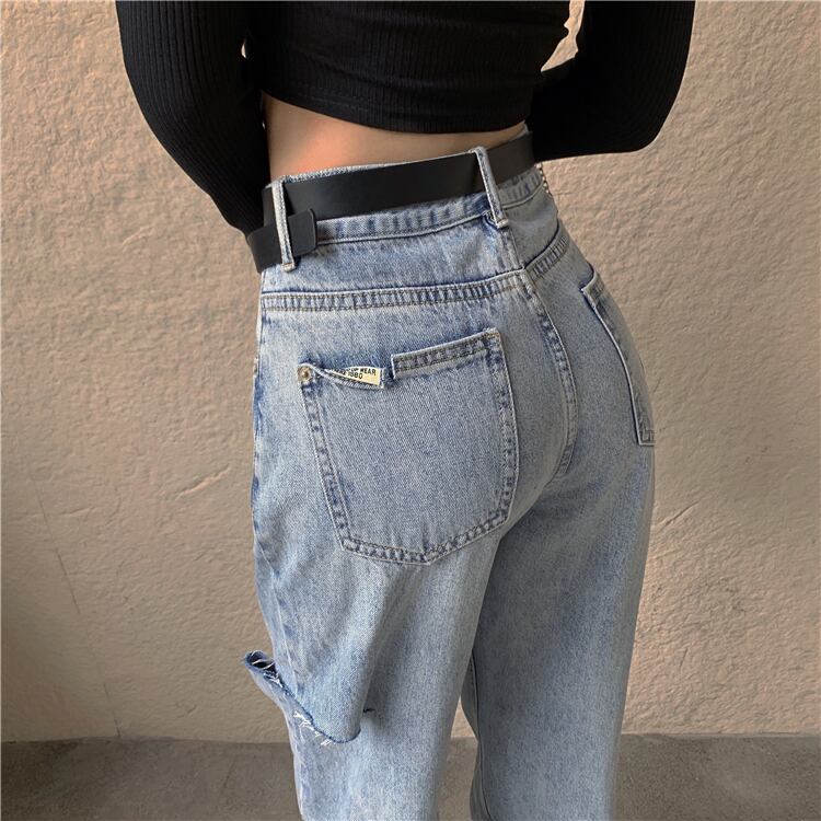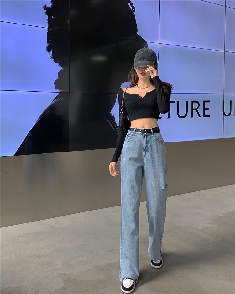 ジーンズ ハイウェストルーズパンツ 夏服スタイル 夏物 ウエスト SYJ21480420739
