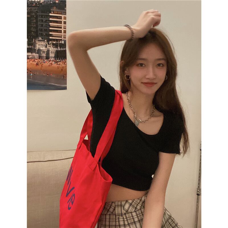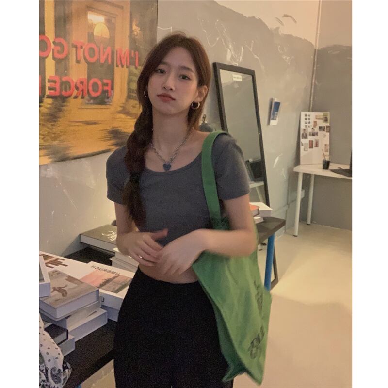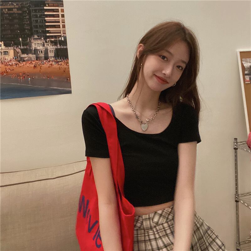 カラーTシャツシャツ レディース韓国ファッションスリムショートゆったり夏服トップス 夏物 MONROE54329471254