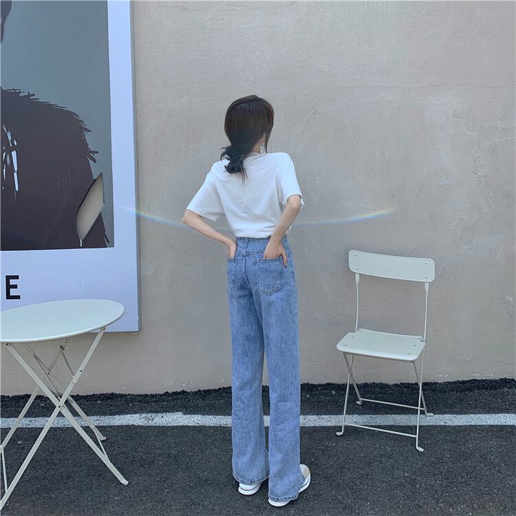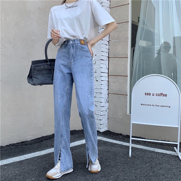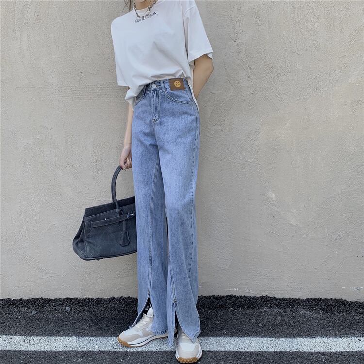 ジーンズ ルーズパンツ 夏服ハイウェスト レッド 夏物 ウエスト SYJ20522941940