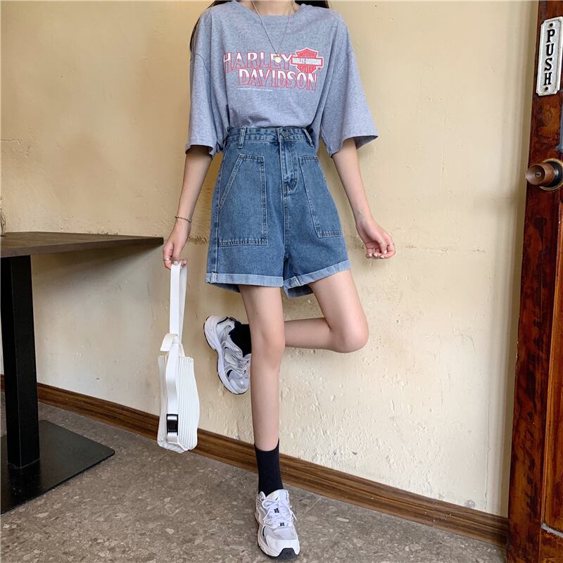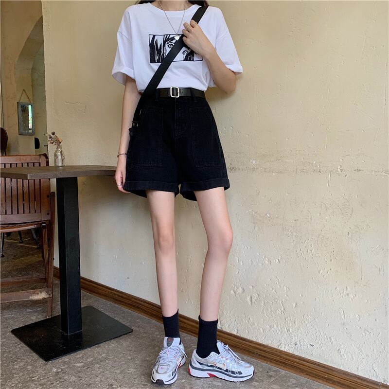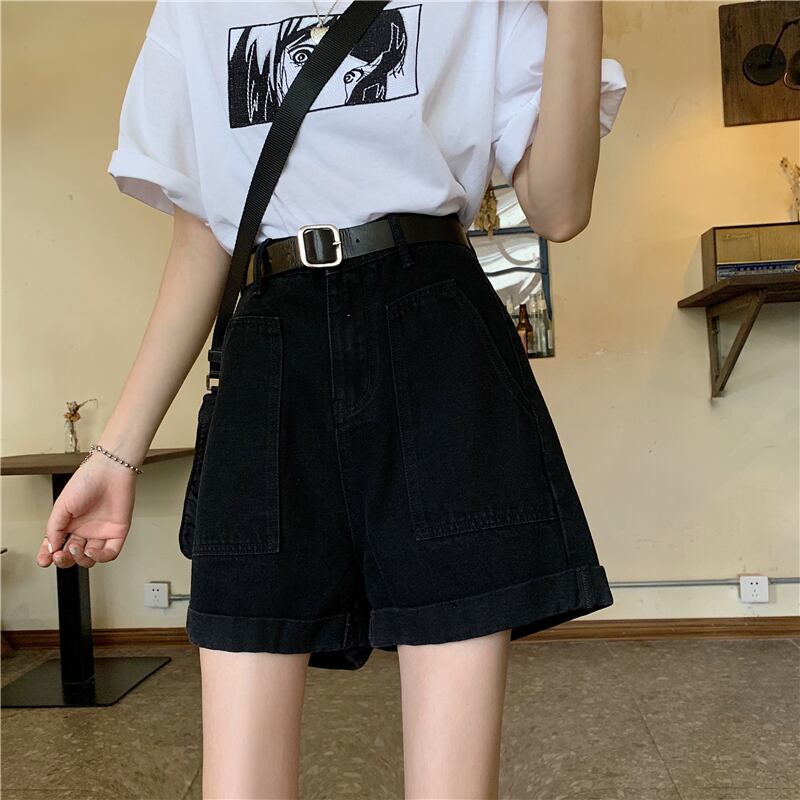 ブラックショーツ スプリング夏服ハイウェストウェストスリムワイドレッグパンツ ルーズ 春物 夏物 ワイドパンツ ウエスト ワンナンバー32073897443