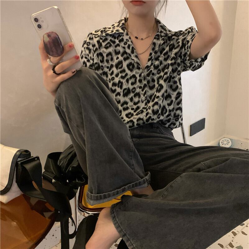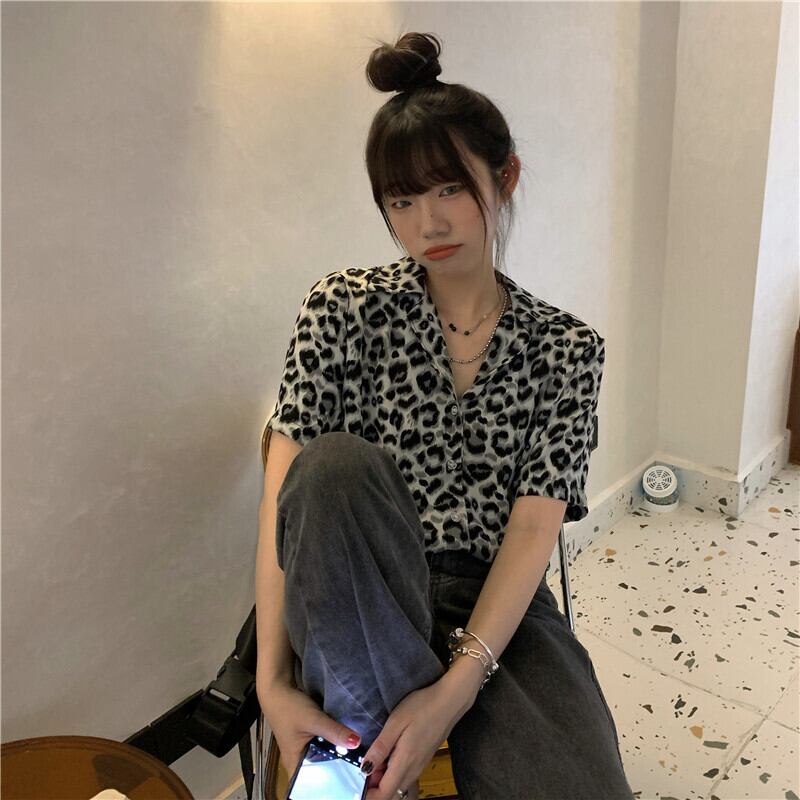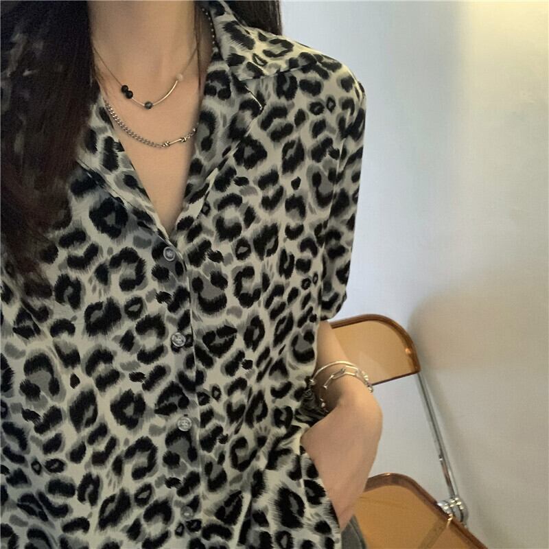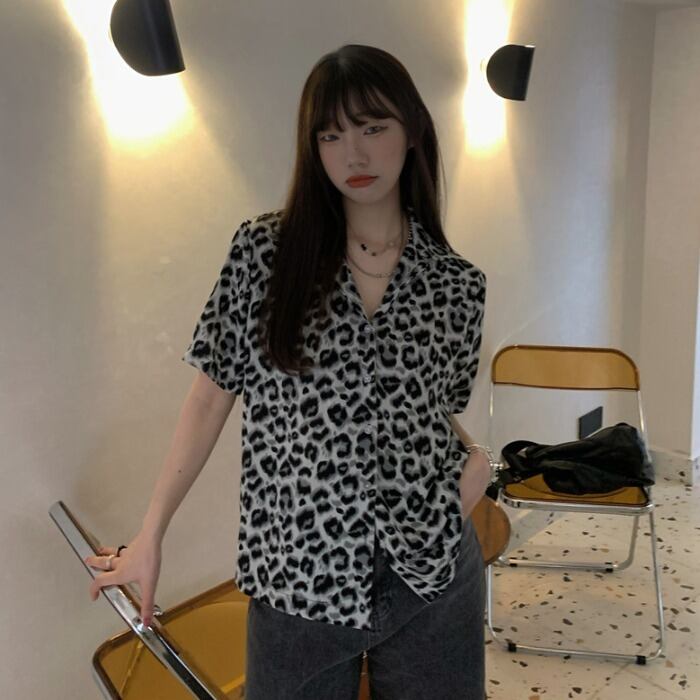 レオパードプリント柄シャツ レディーススタンダードスタイル夏服トップス コート レトロ 夏物 MONROE83720109560