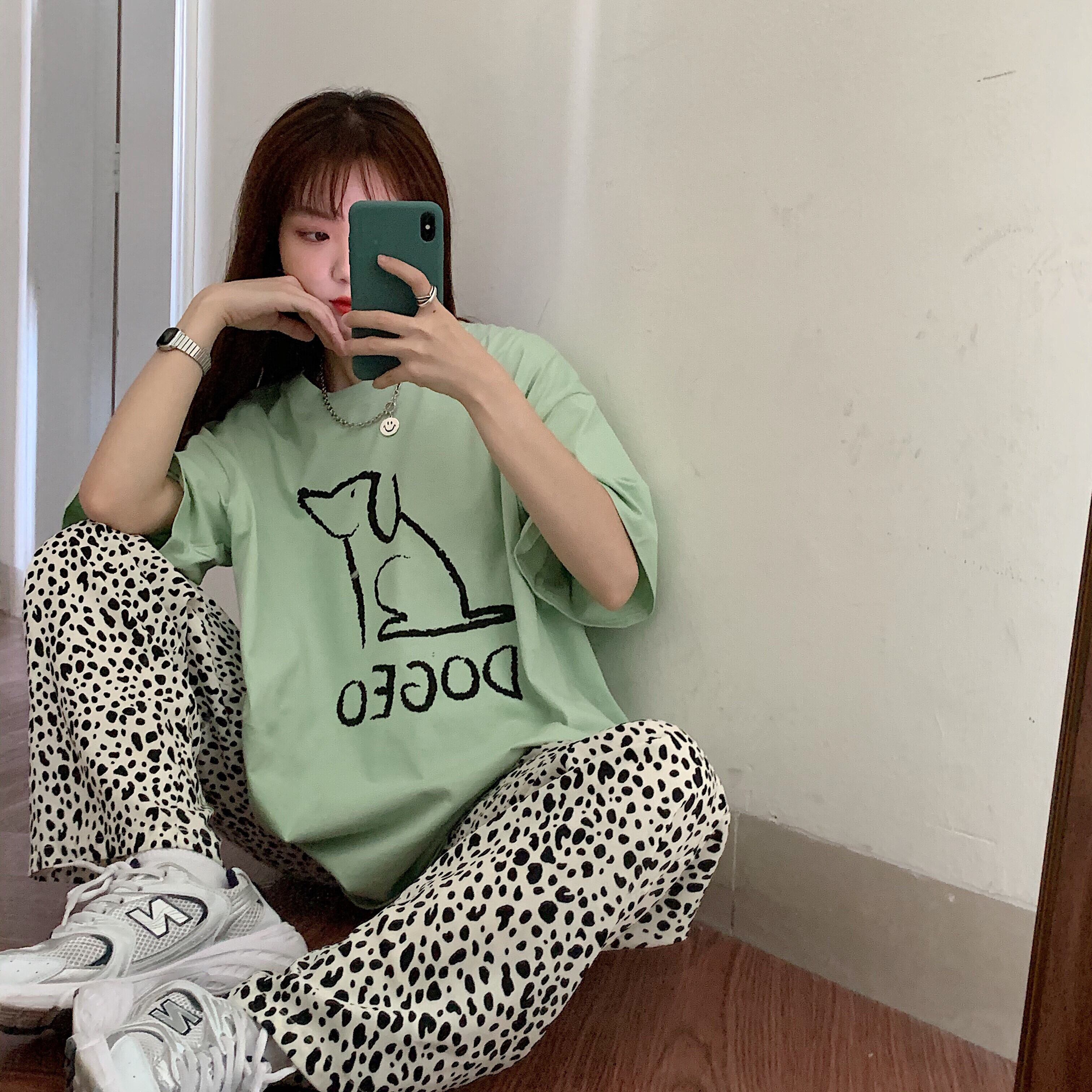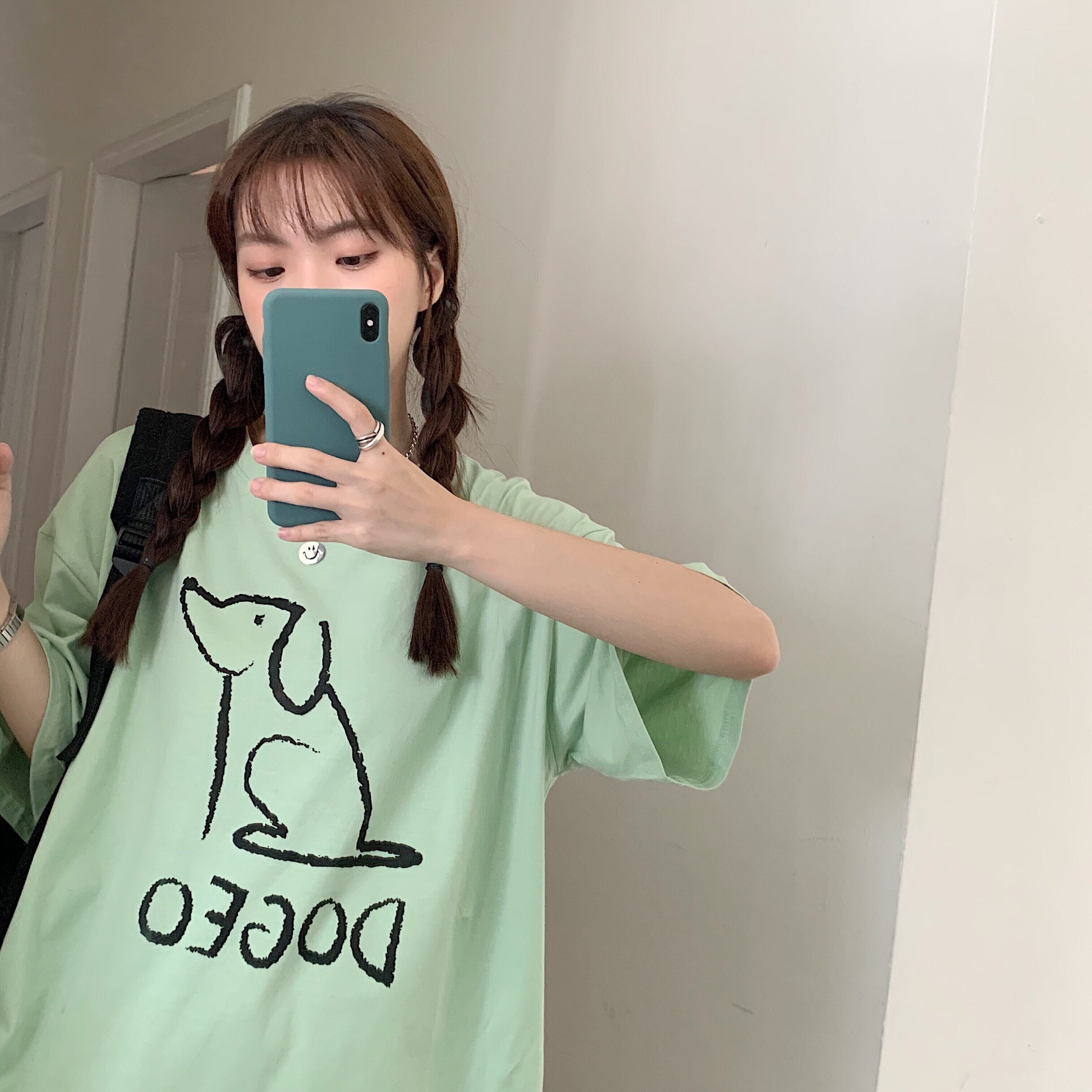グリーンTシャツレディーストレンド夏服ルーズスタイル 原宿 夏物 SYJ2323711079
