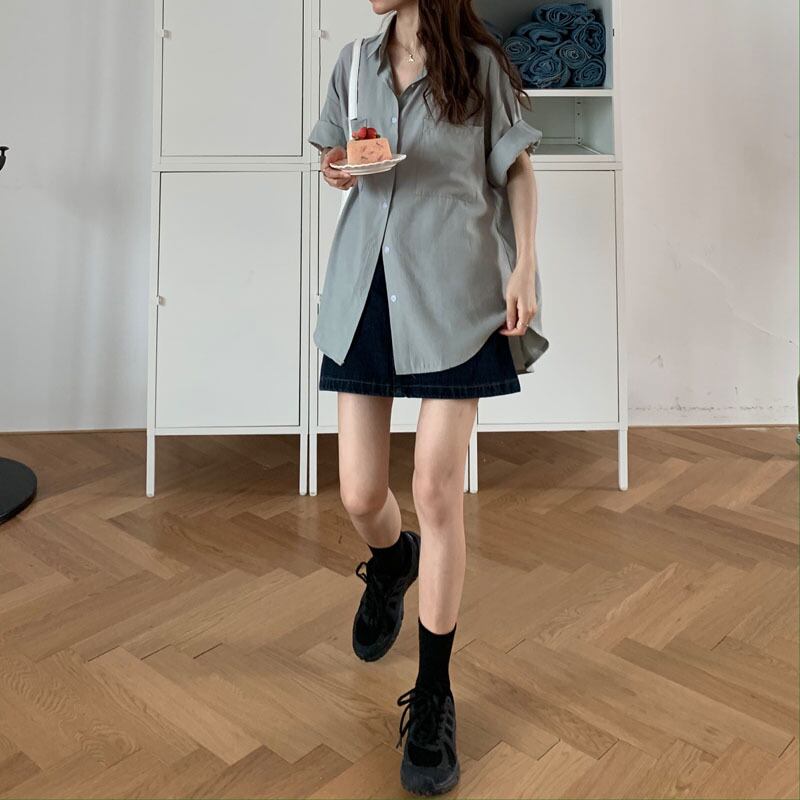 シャツ ソリッド カラー夏服スタイル韓国ファッションジャケット 夏物 ソリッドカラー MONROE17868208535