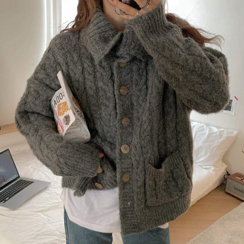 セーター レディーススプリング韓国ファッションルーズニットカーディガンジャケット 春物 SPM7389357251