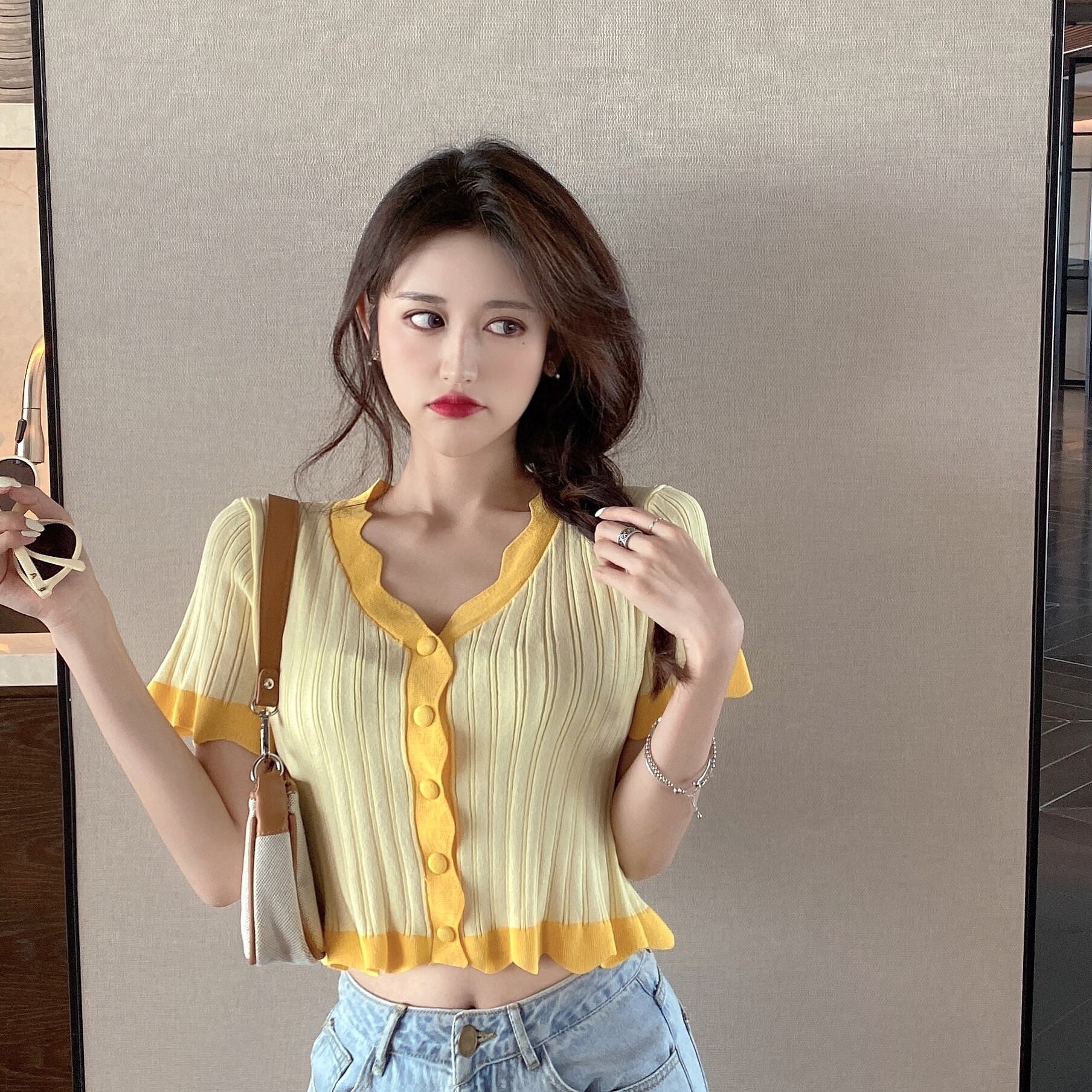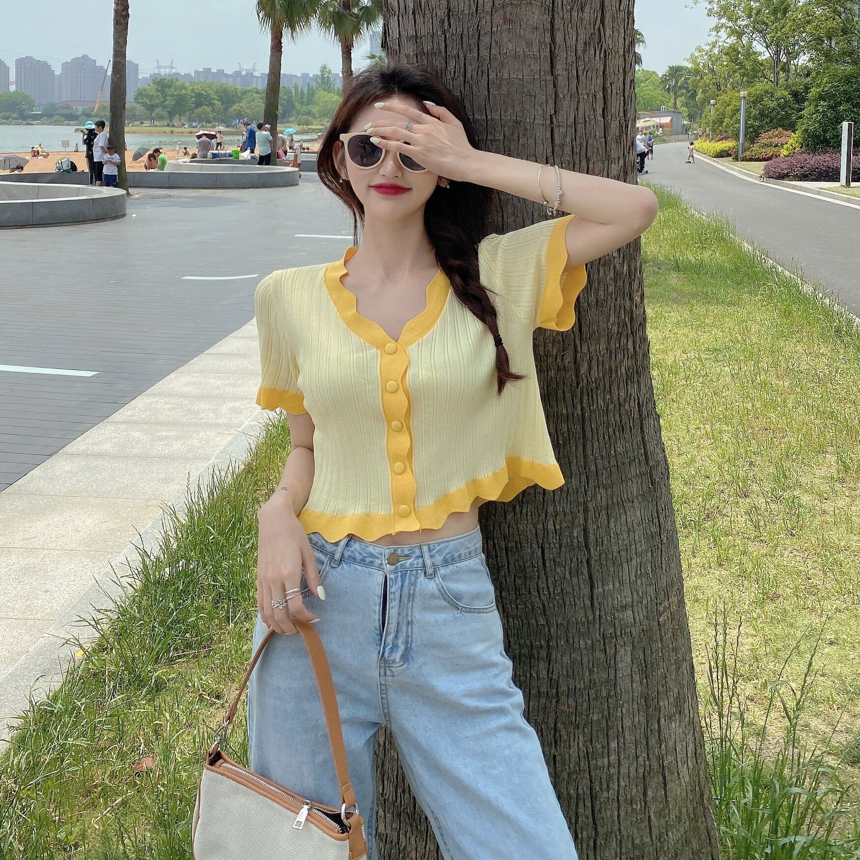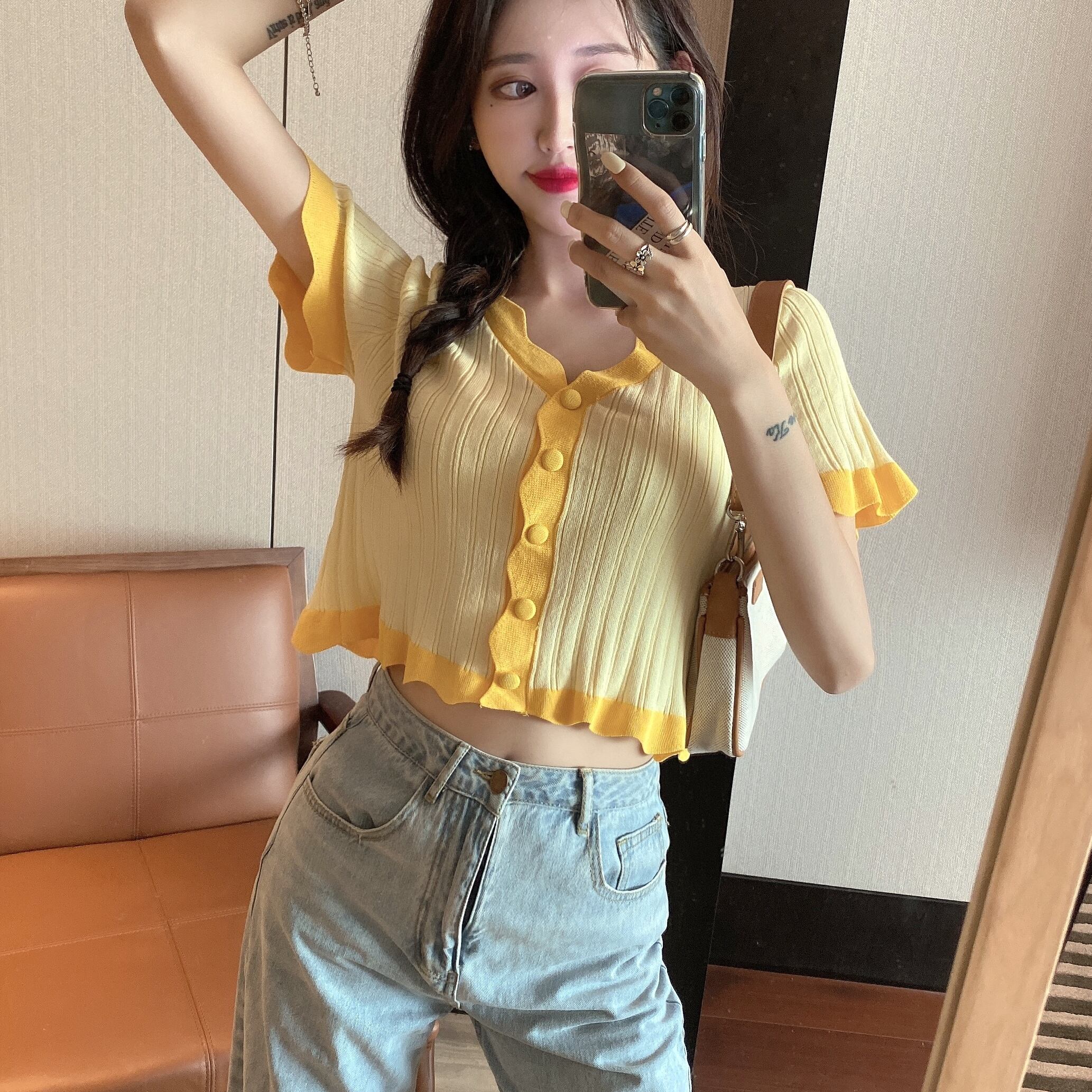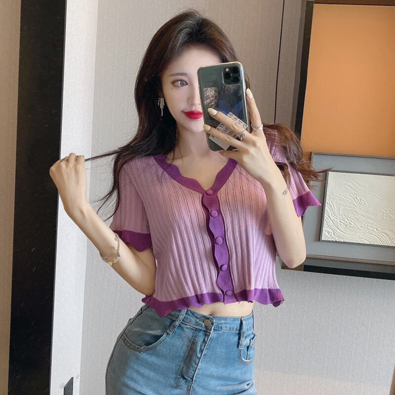 ショートクロップトップ トップス レディース夏服ニットTシャツトレンド 夏物 SYJ30002467916