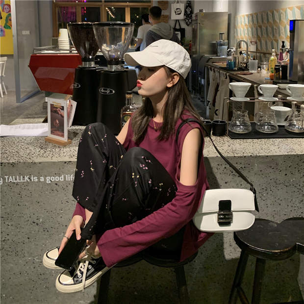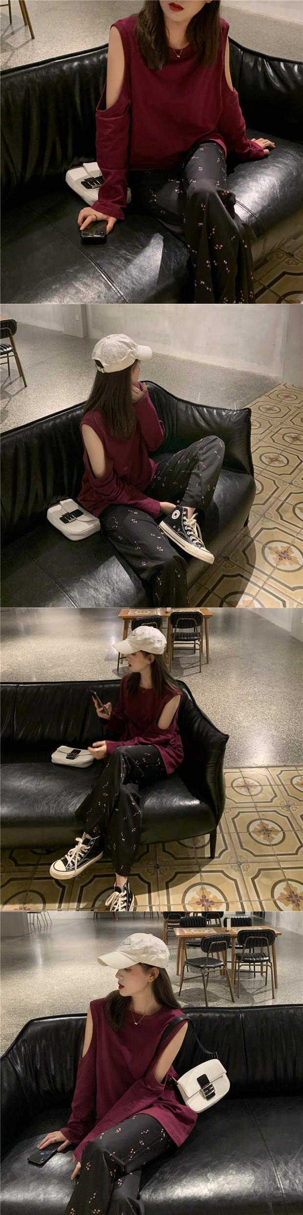 色:梅色スウェットシャツ,フローラルパンツ