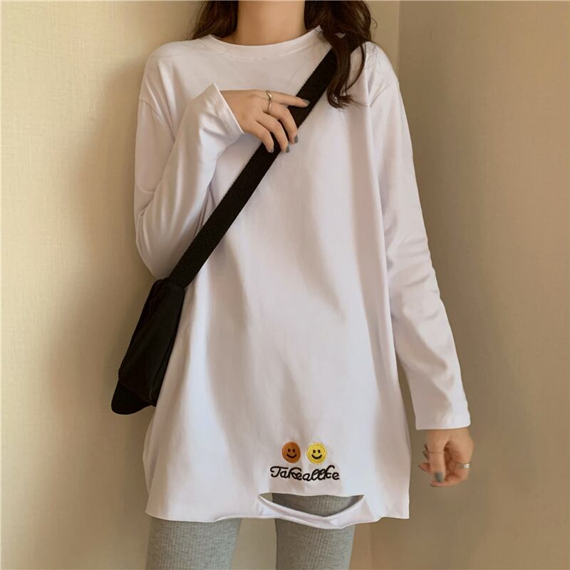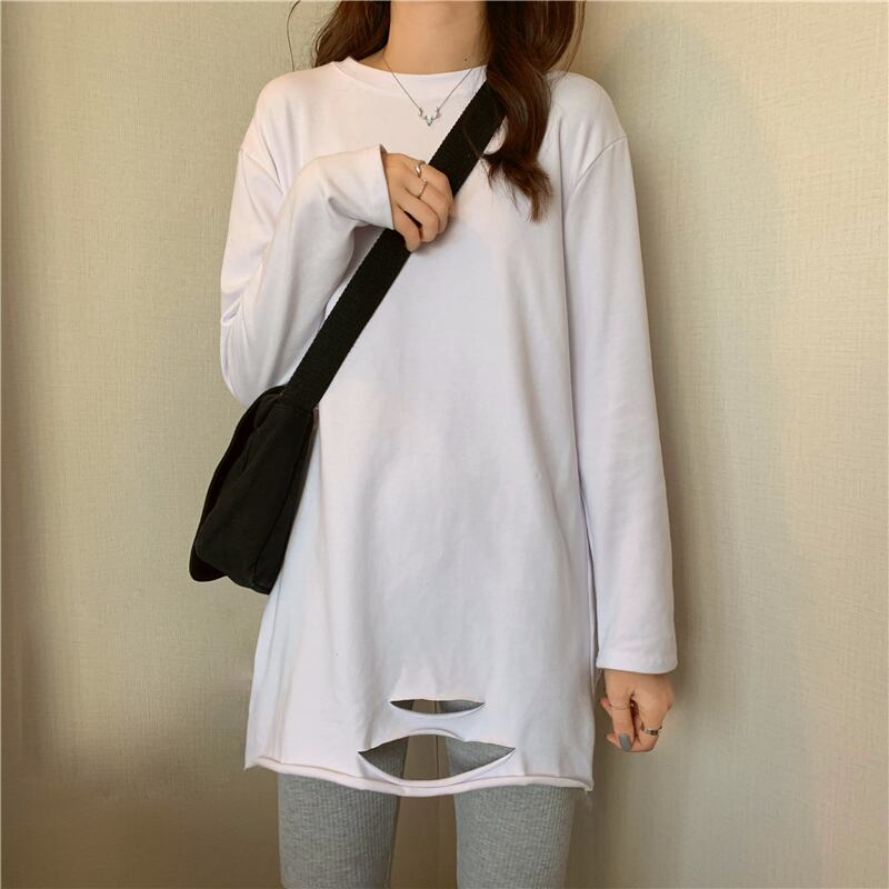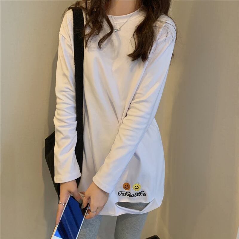 スプリングルーズTシャツシャツ ゆったり夏服ホワイトトップス ロング 春物 夏物 長袖 ミドル丈 SPM76912443471