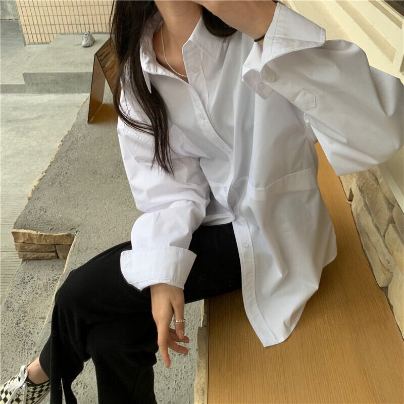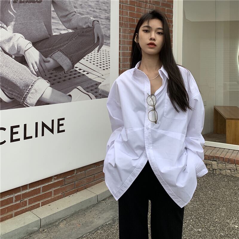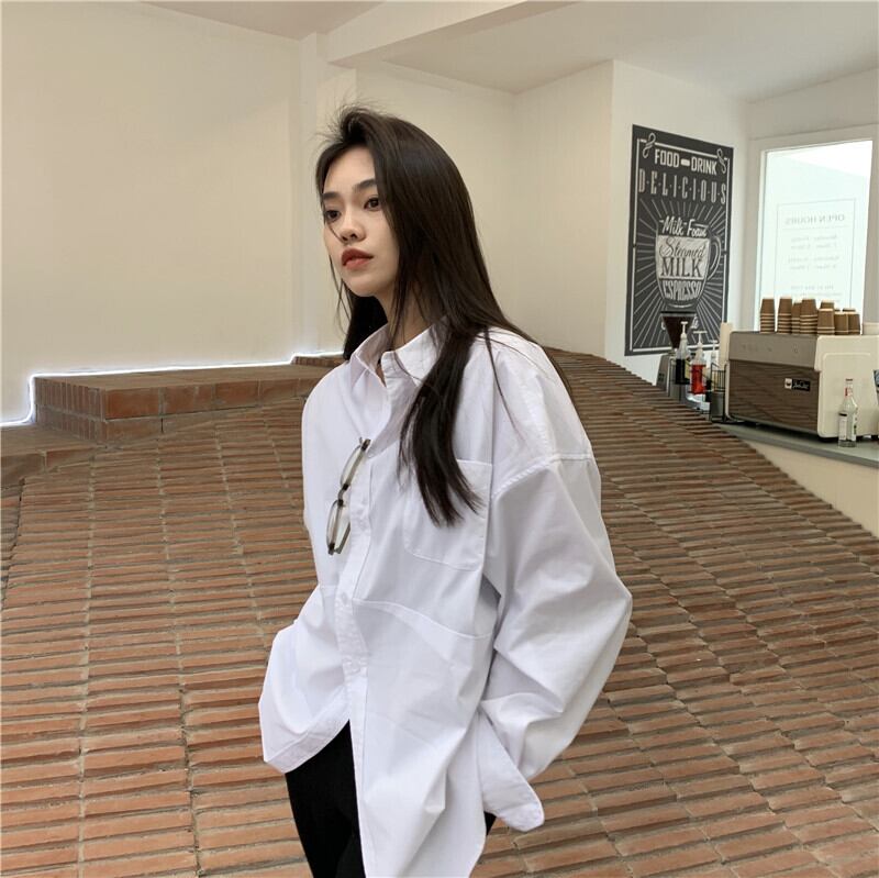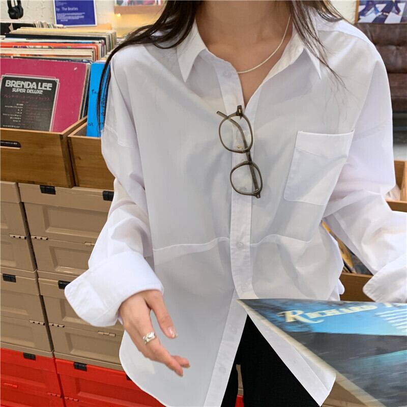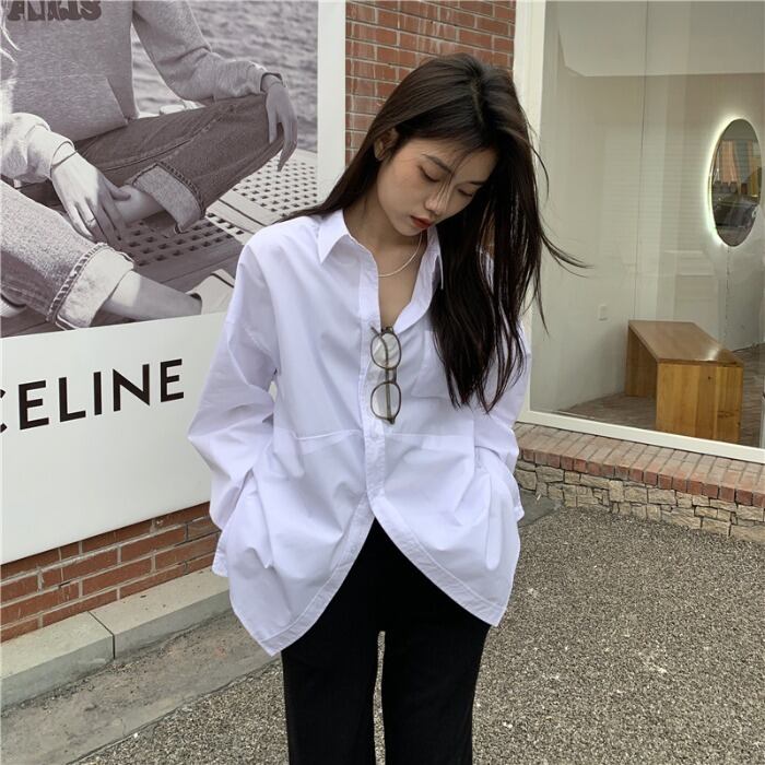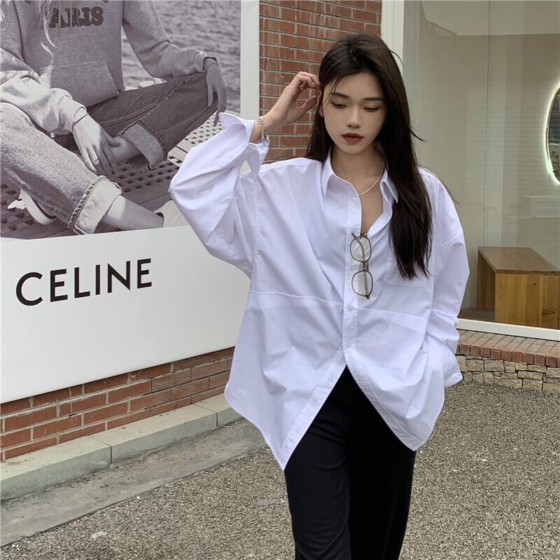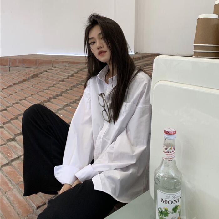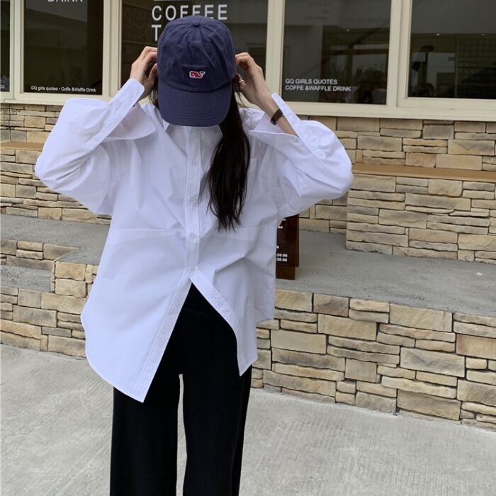 ホワイトシャツ レディースルーズジャケット スプリングトップス ロング 春物 長袖 ミドル丈 MONROE11083096028
