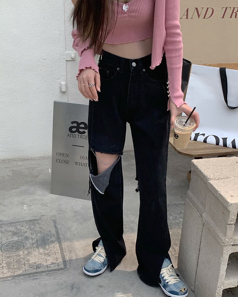 ブラックジーンズ ハイウェストウェストワイドレッグパンツ スプリング夏服レディースルーズトレンド 春物 夏物 ワイドパンツ ウエスト MONROE22761840191