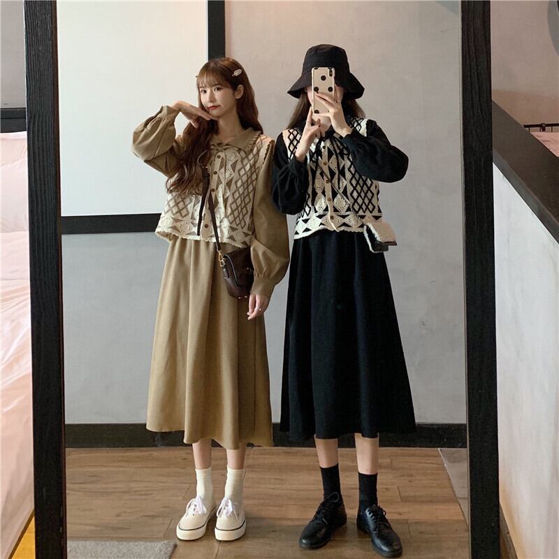 色:カーキベストワンピース,ワンピースカーキ,ブラックベストワンピース,黒のワンピース