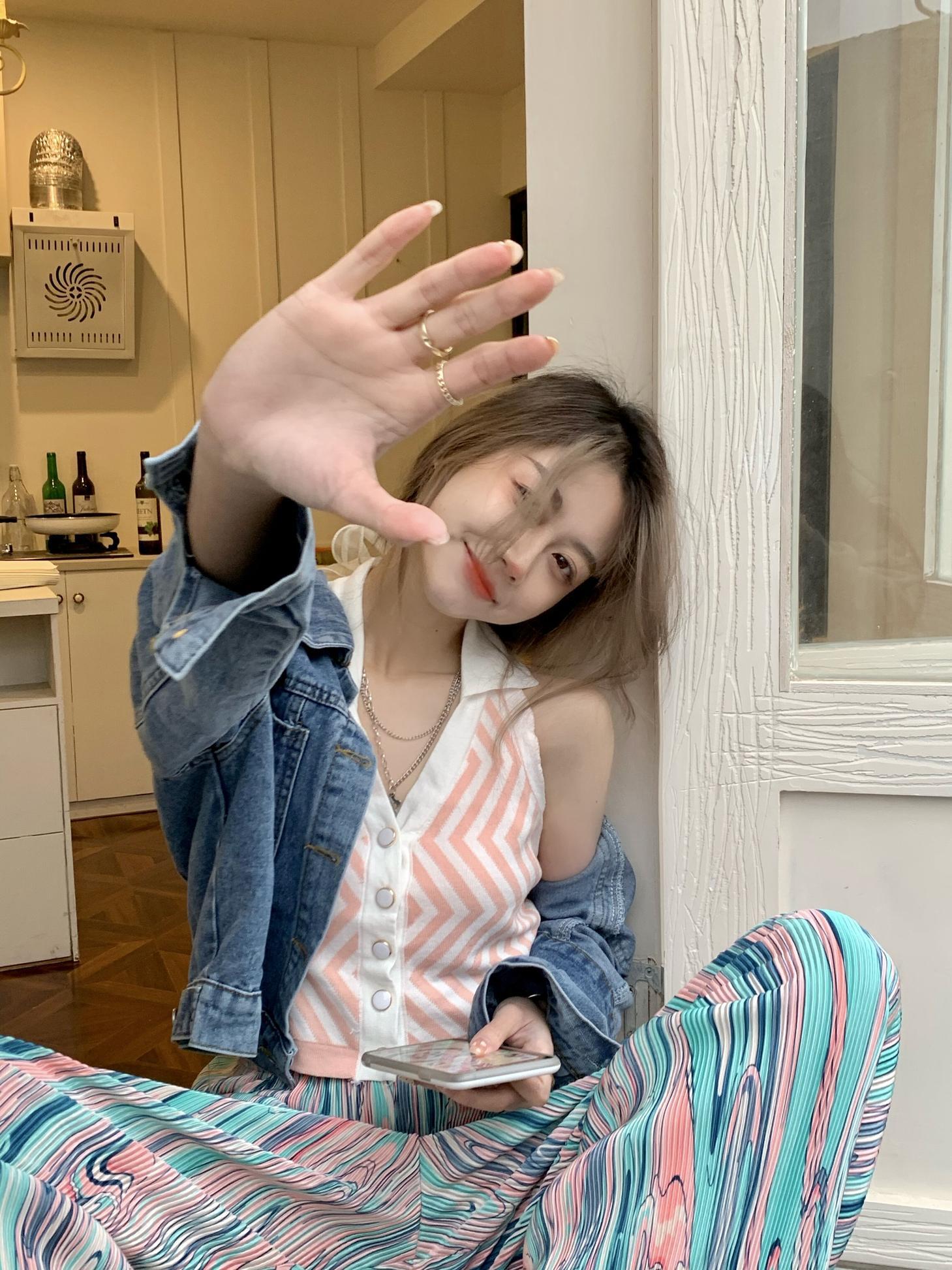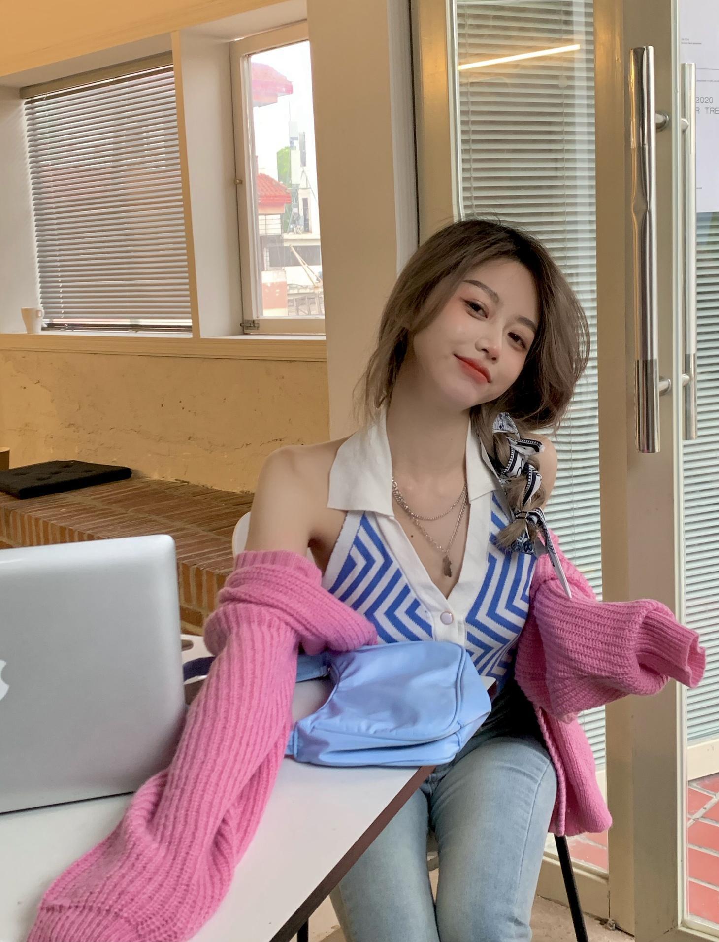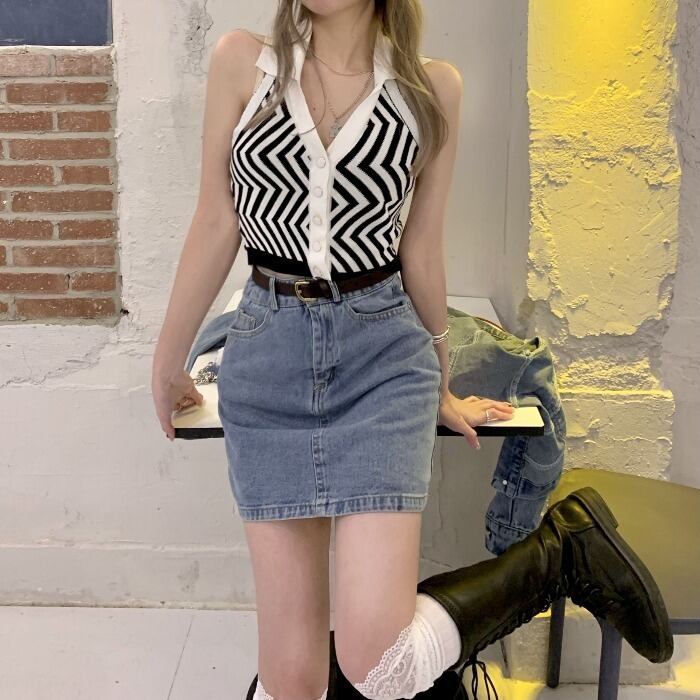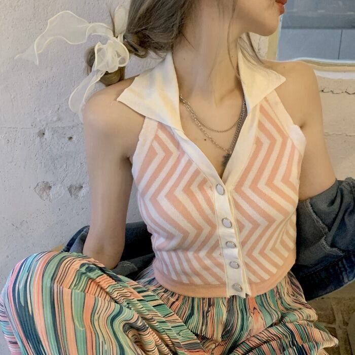 ストライプスリムショートトップス 夏服トレンドホルターニット 夏物 MONROE13775547379