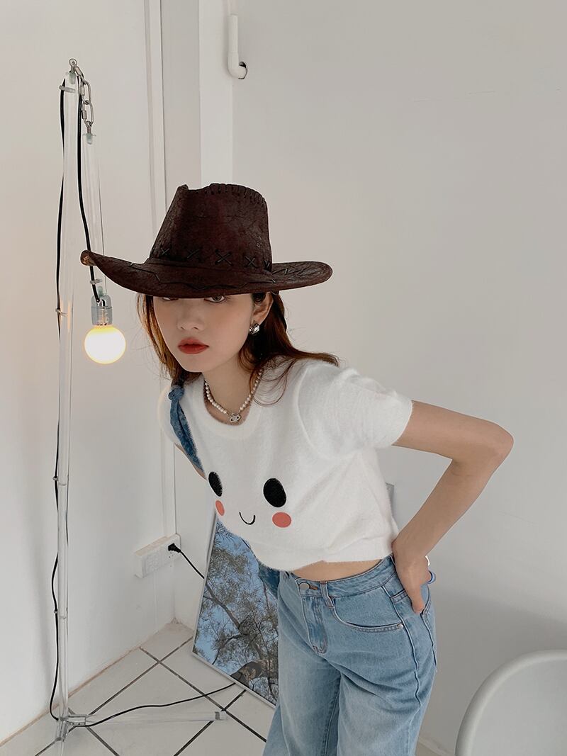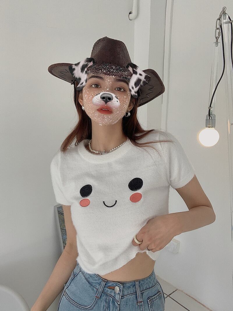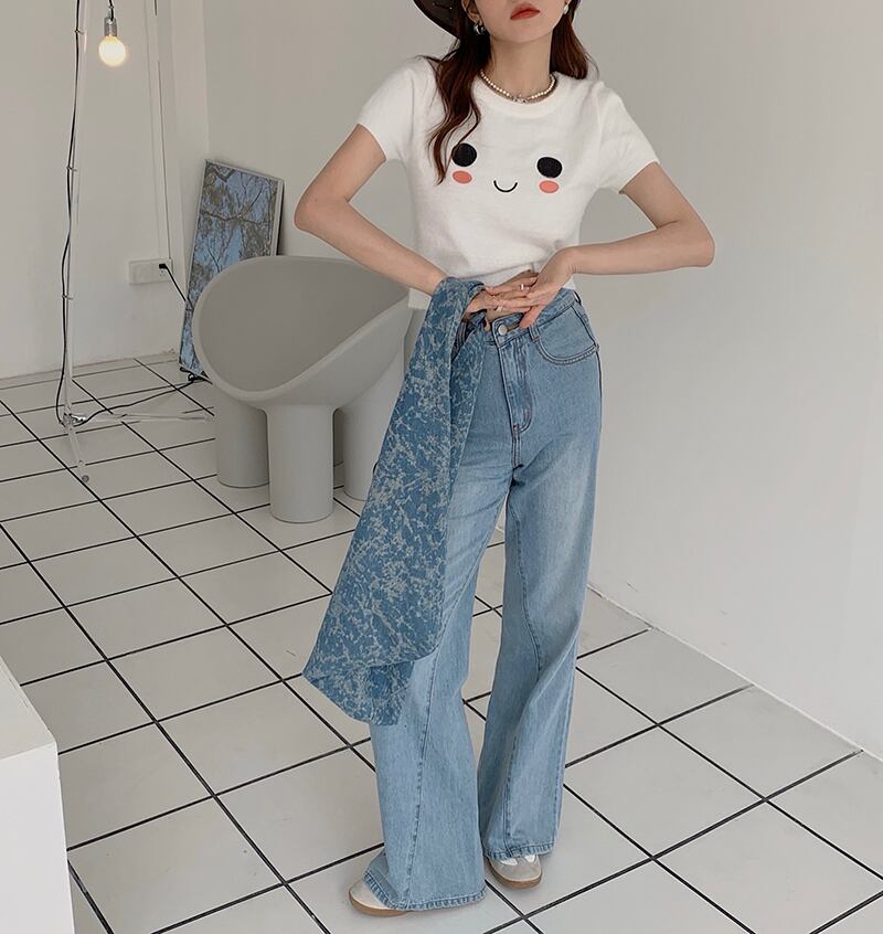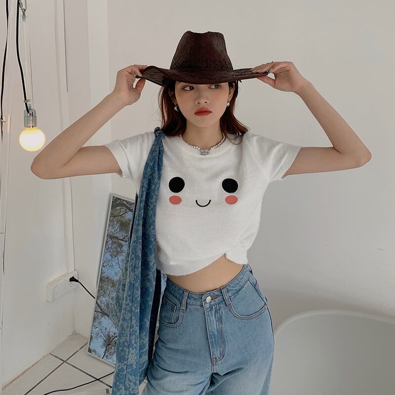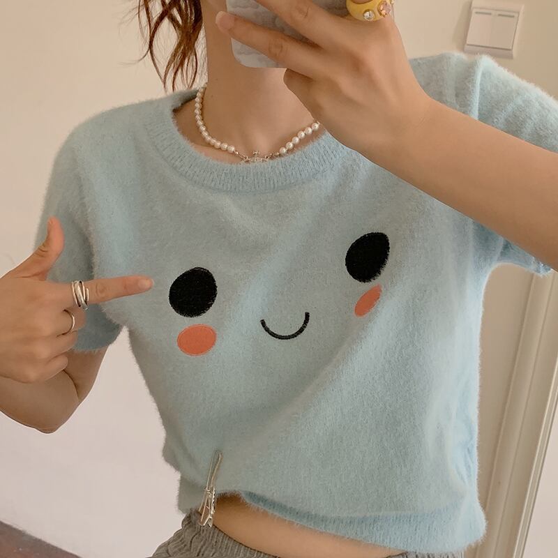 ブルーショートTシャツ夏服ニットトップス トレンド 夏物 SYJ77944653060
