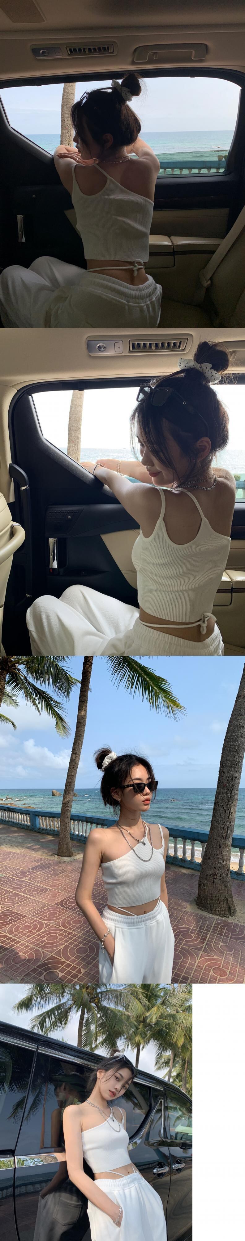 ホワイトレディース夏服スタイルショートストラップレストップス 夏物 SYJ52600167688