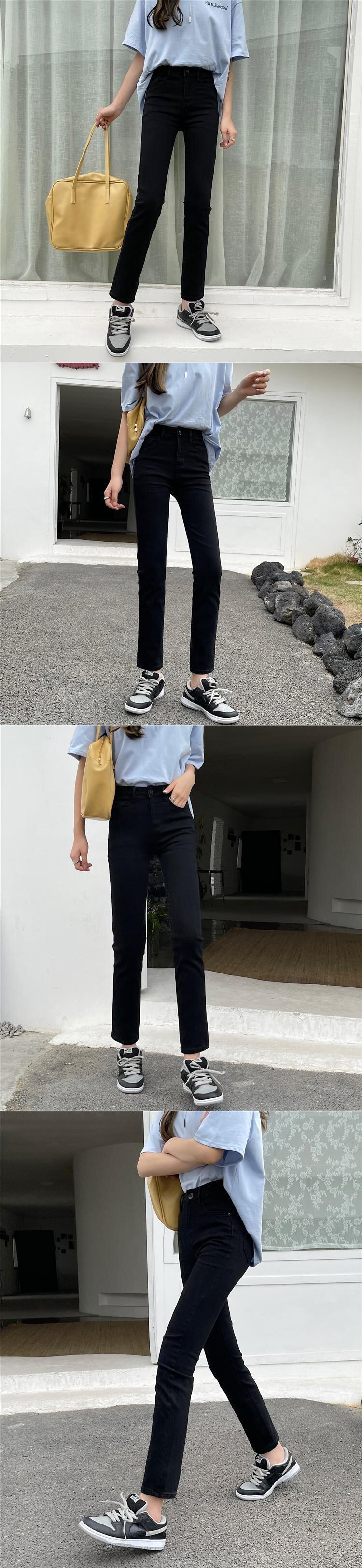 ジーンズ 夏服ハイウェスト薄手パンツ ブラック 夏物 ウエスト SYJ98770229856