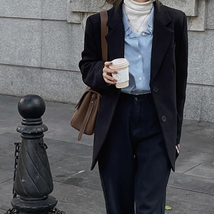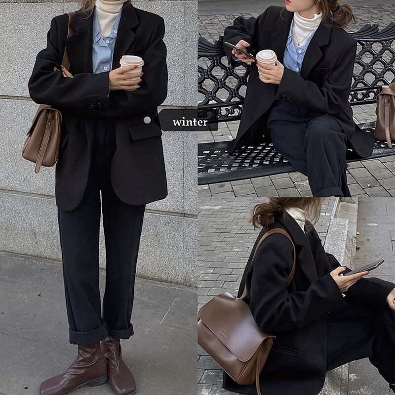 ブラックジャケット レディーススプリングカジュアルルーズ韓国ファッションスタイルトップス ストリート 春物 ミドル丈 MONROE99225383081