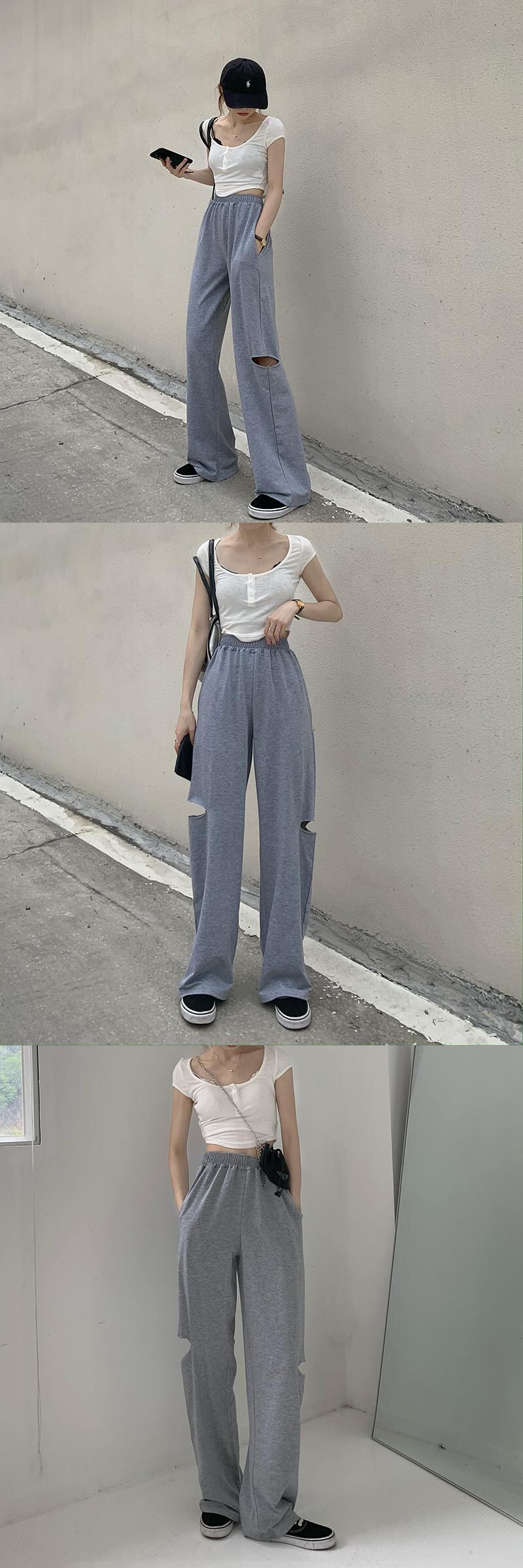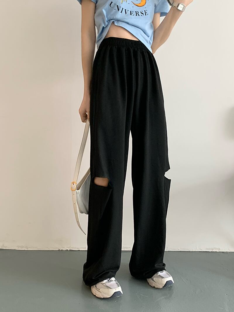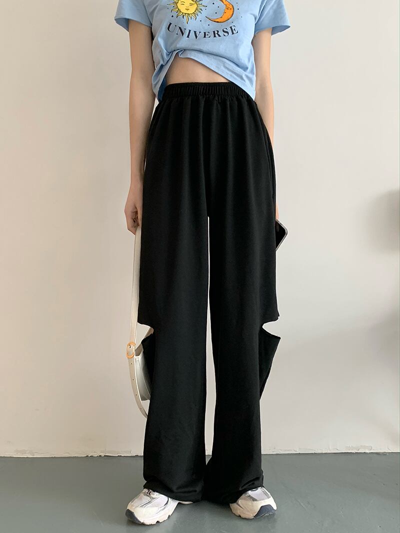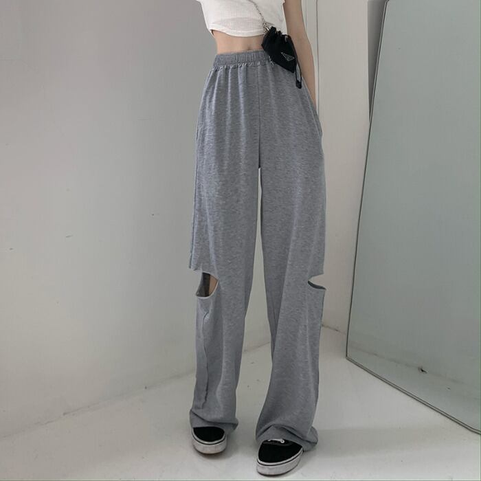 グレーパンツ ハイウェストカジュアル夏服ルーズ 夏物 ウエスト MONROE77564969882