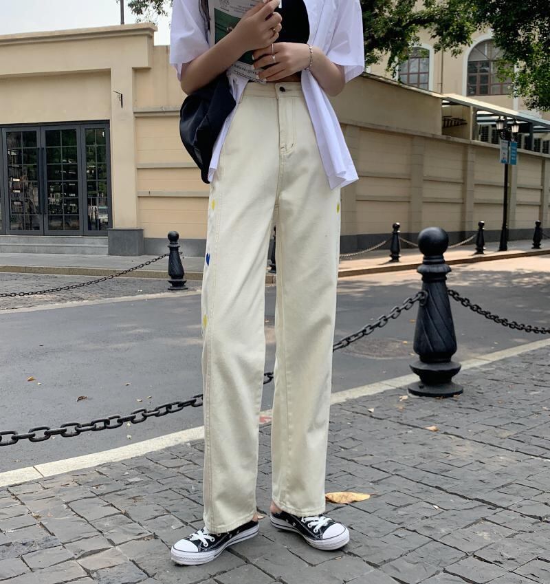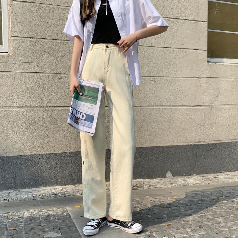 ジーンズ ルーズ夏服ウェストワイドレッグパンツ トレンド 夏物 ワイドパンツ ウエスト SYJ33179491494