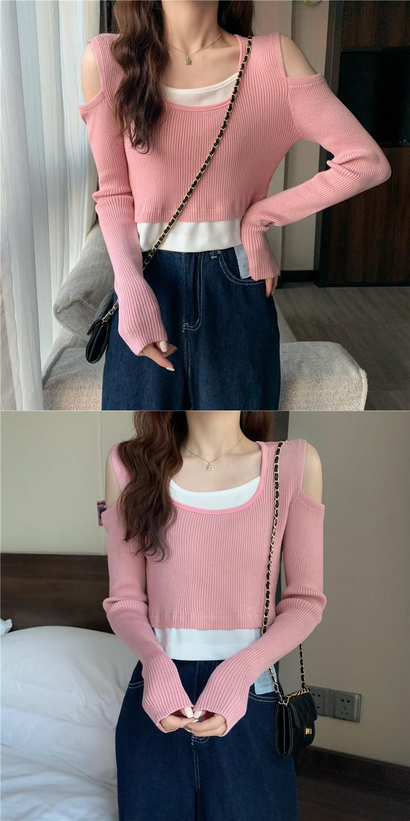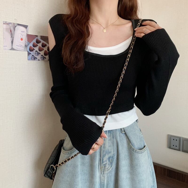 ショートトップス スプリング韓国ファッションスリムセーター レディース ロング 春物 スタイル 長袖 SPM55899073913