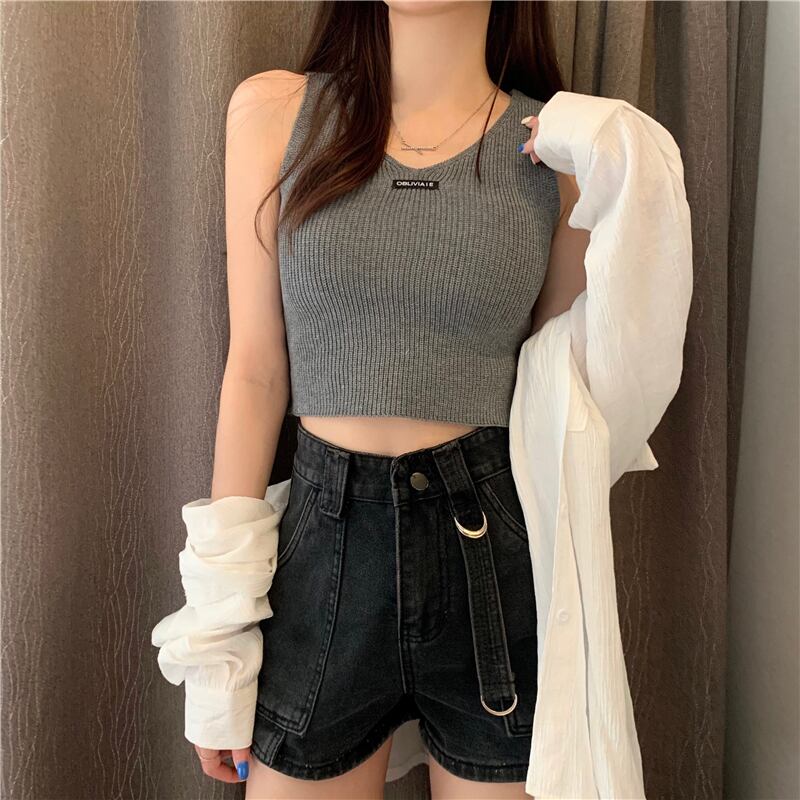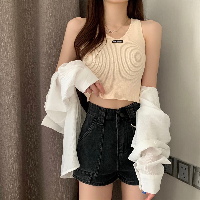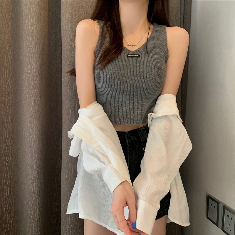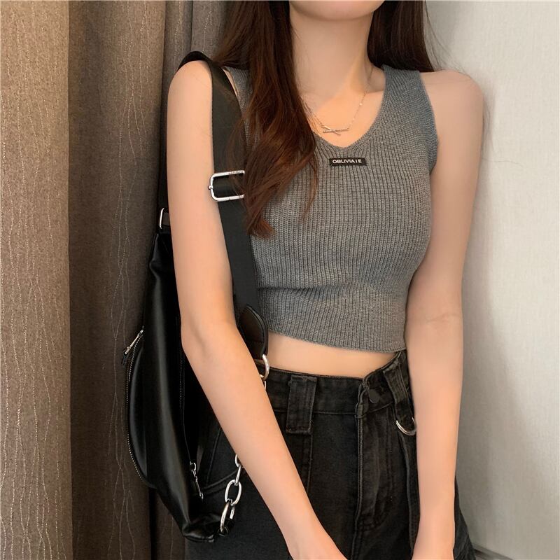 ニットレディース夏服ノースリーブトップス ショート 夏物 SPM57186311021