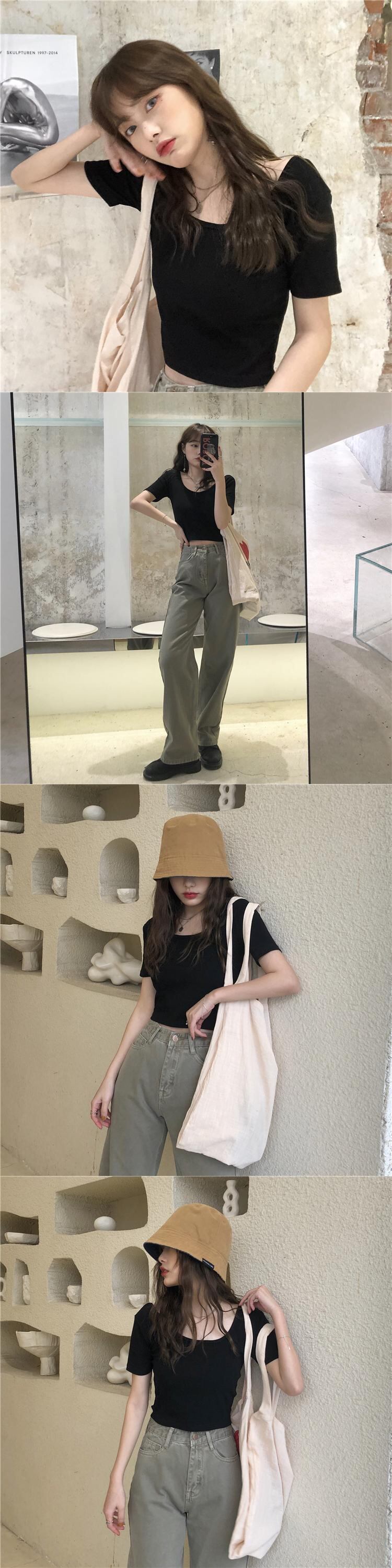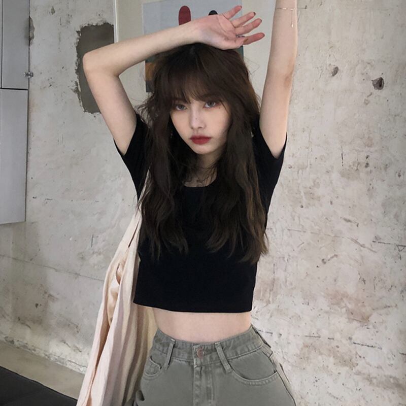 スプリング韓国ファッションスリムショートTシャツシャツ レディースブラックゆったりトップス 春物 スタイル SPM54129186700