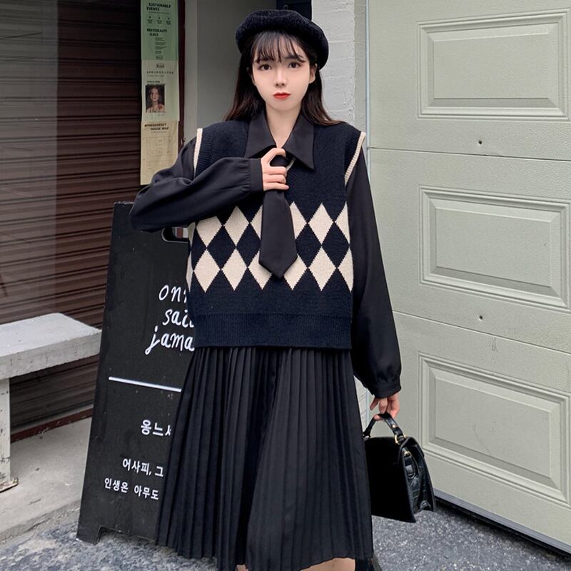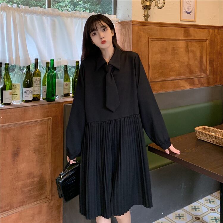 スタイルブラックワンピースレディーススプリングプリーツスカート ニット 春物 SPM70546508043