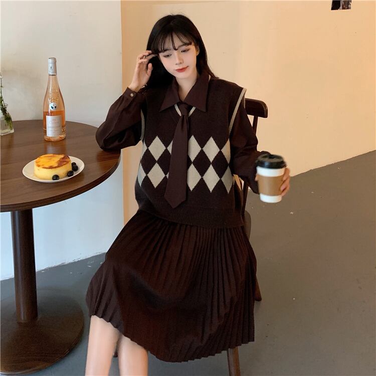色:茶色のスカートワンピース,黒スカートワンピース,ブラウンベストワンピース,ブラックベストワンピース