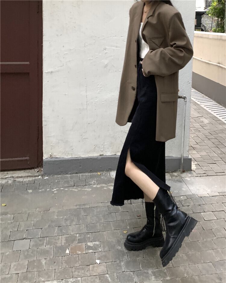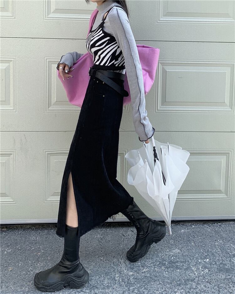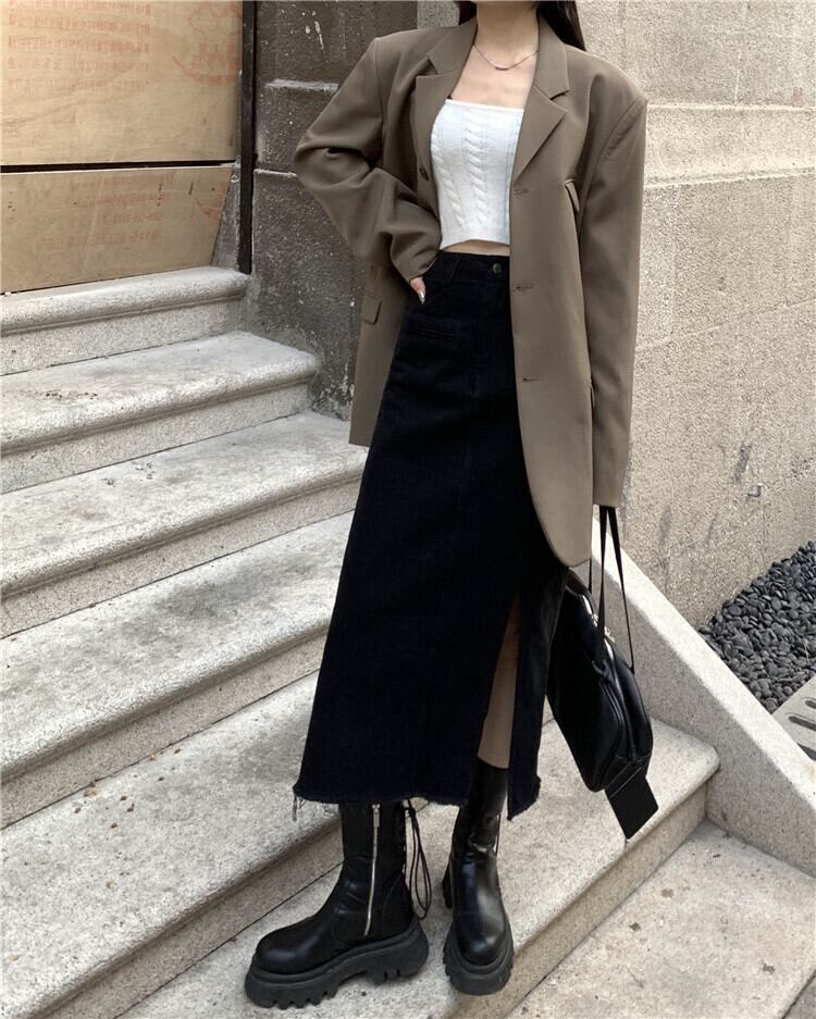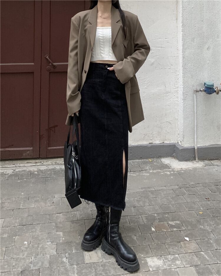 スカート レディーススプリング秋物ハイウェストウェストスタンダードスタイルブラックAライン夏服 レトロ 春物 夏物 オータム ウエスト ミドル丈 SPM94771065720