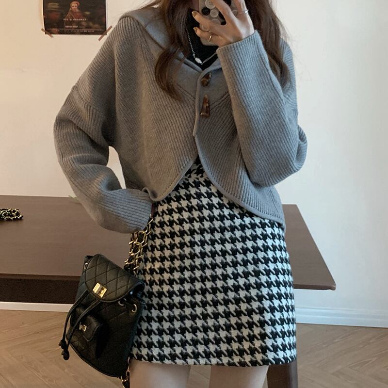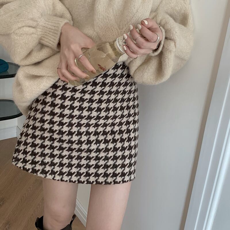 スプリング秋物ショートスカート スタンダード格子柄薄手ウェストAライン レトロ 春物 オータム ウエスト SPM82150583315