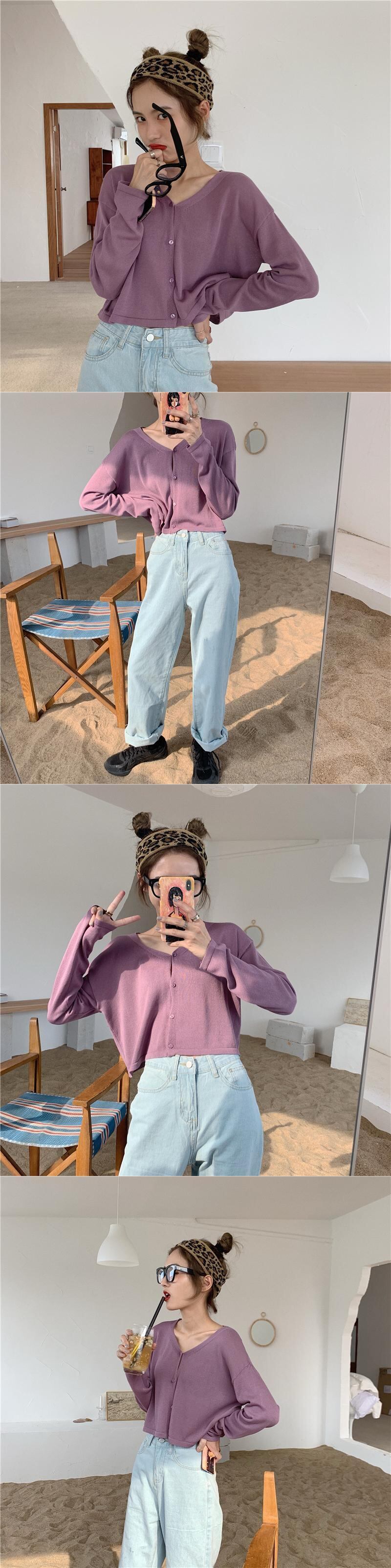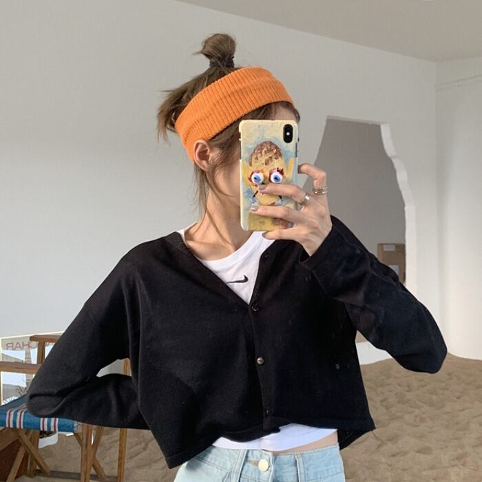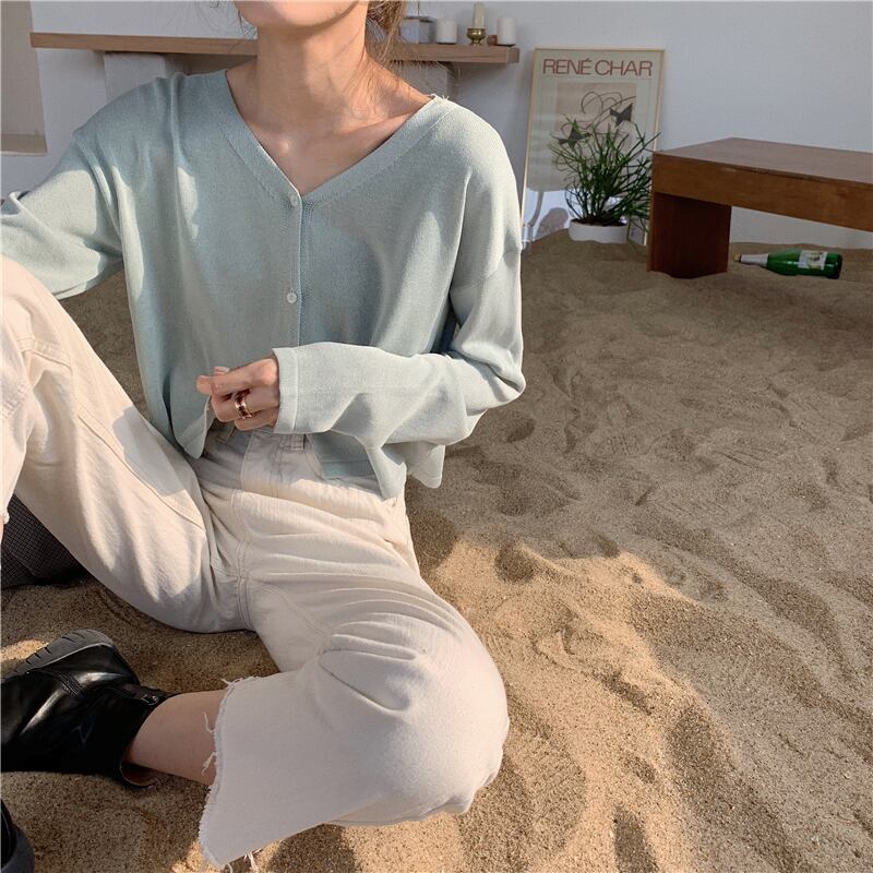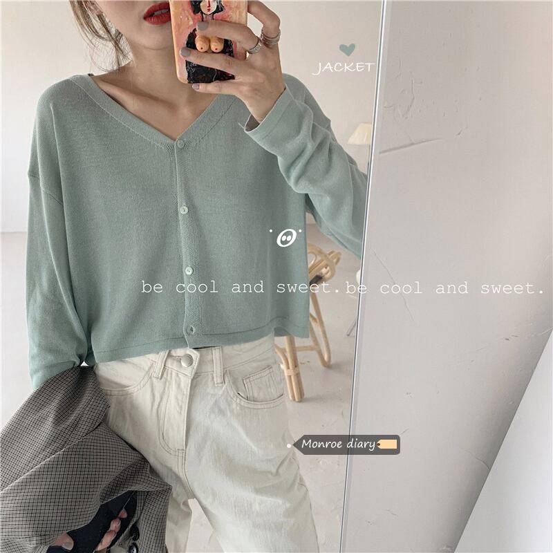 Vネック薄手ニットカーディガンスプリングルーズセーター コート ショートトレンドトップス 春物 MONROE71958471055