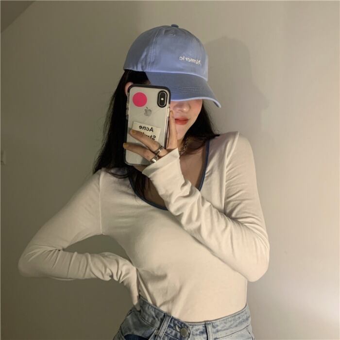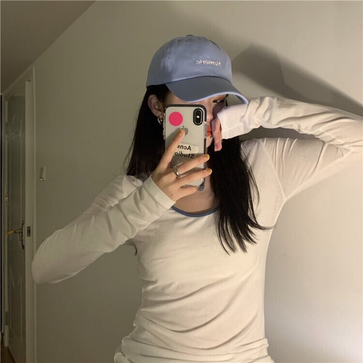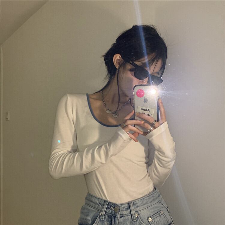 韓国ファッションTシャツシャツ スプリングゆったりスリムトップス トレンド ロング 春物 スタイル 長袖 MONROE97330116828