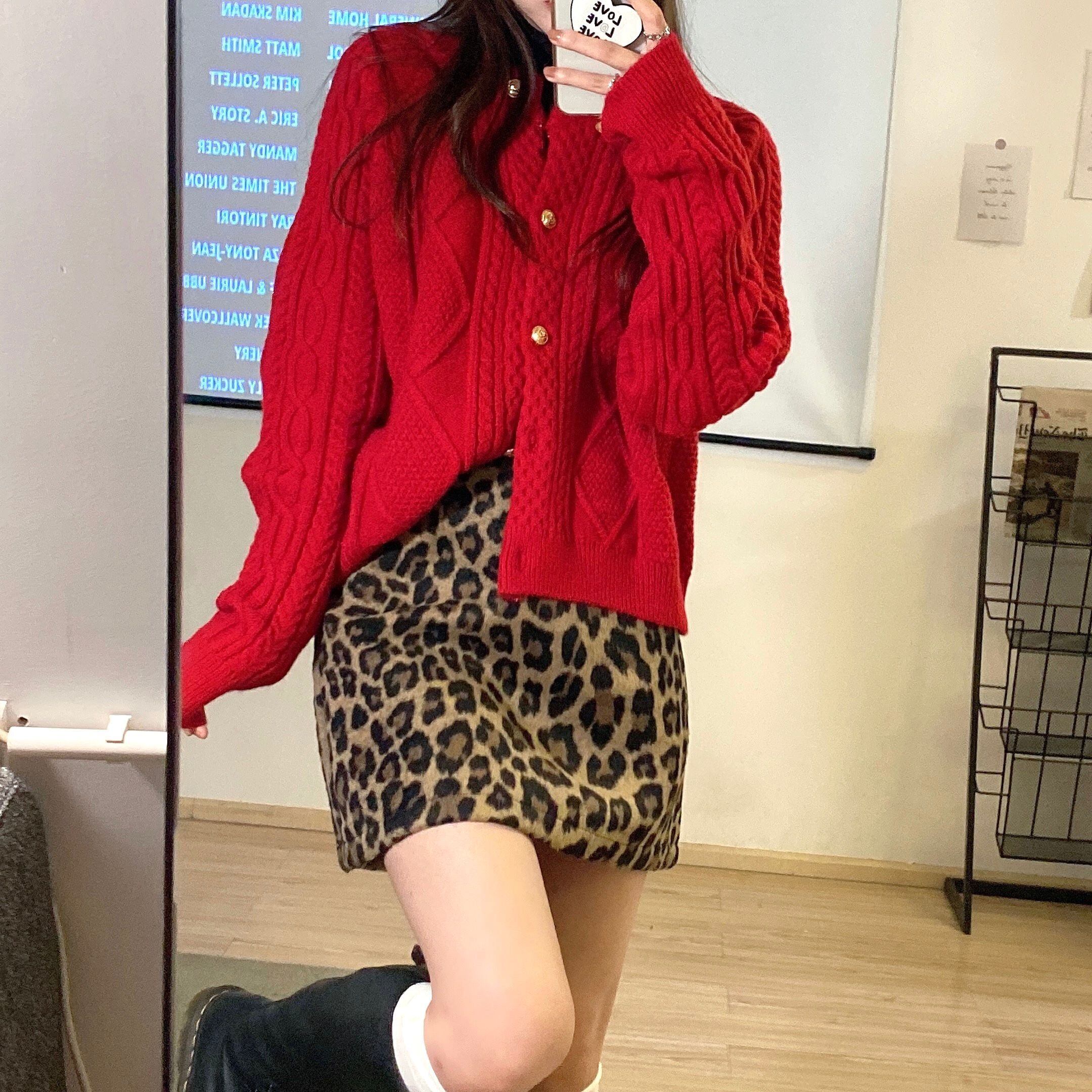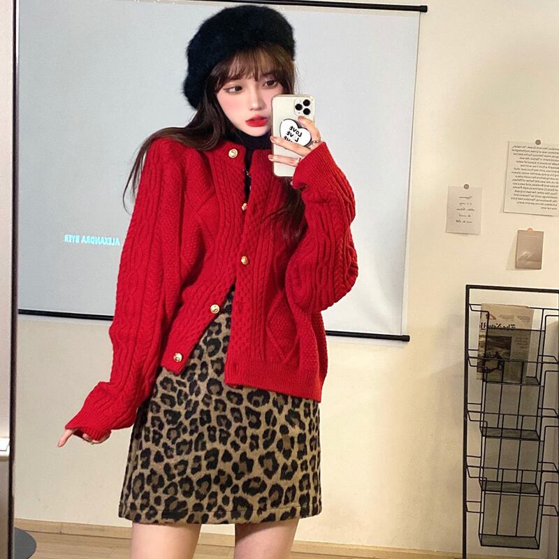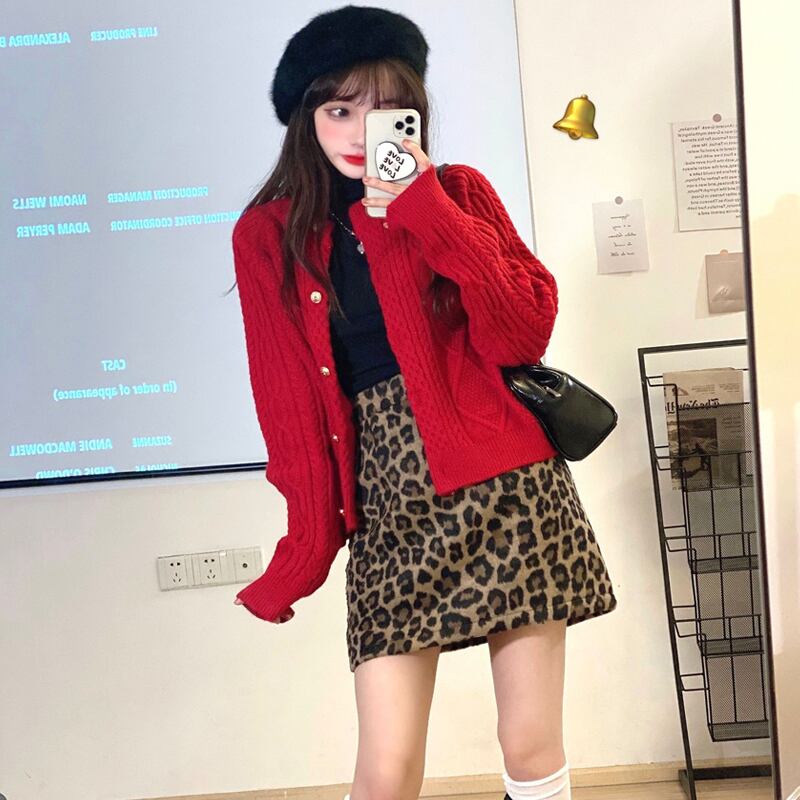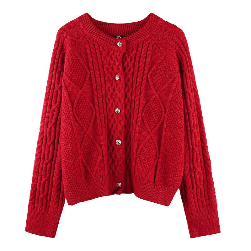 韓国ファッションスプリング秋物スタンダードレッドセーター ニットカーディガンジャケット レトロ 春物 オータム スタイル SPM22238422108