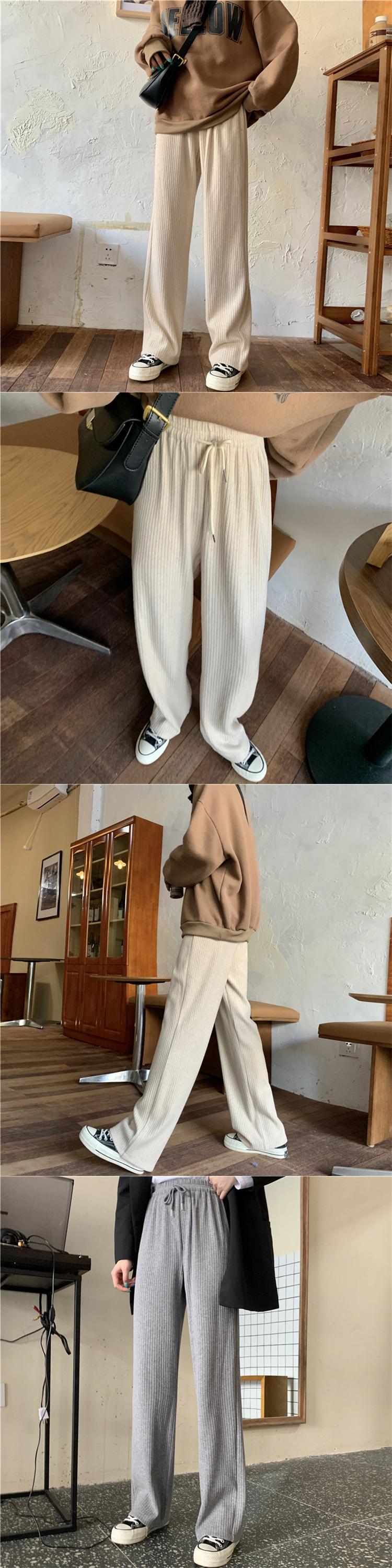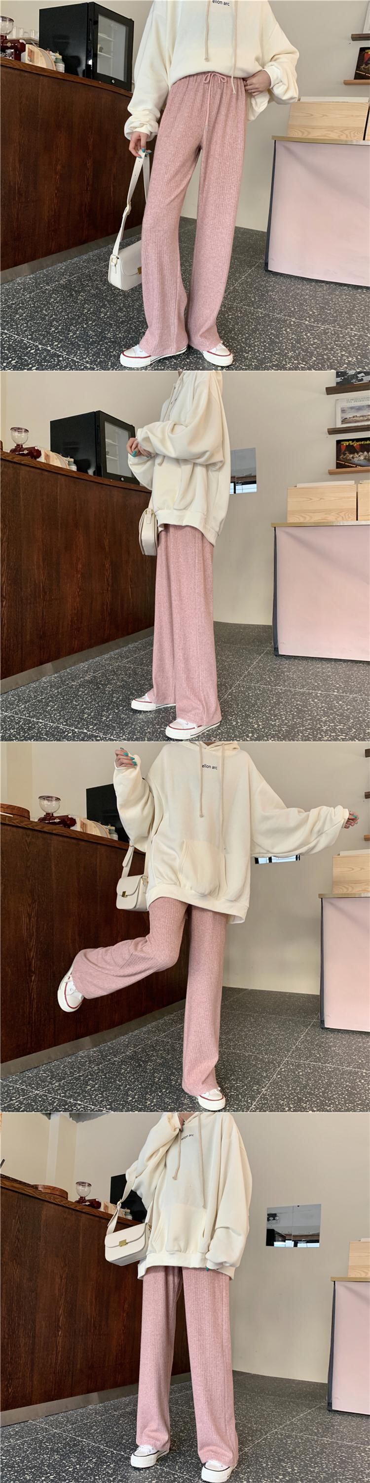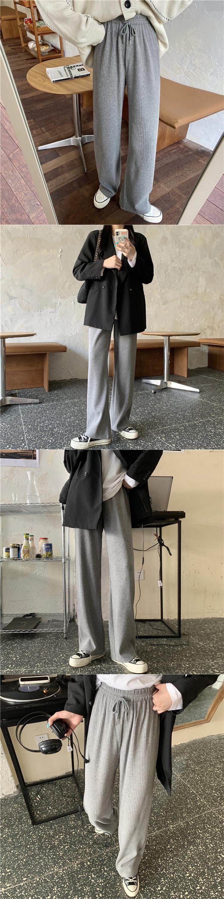 ニットカジュアルパンツ スプリング秋物韓国ファッションハイウェストウェストワイドレッグロングレディース 春物 オータム ワイドパンツ スタイル ウエスト SPM75911715021