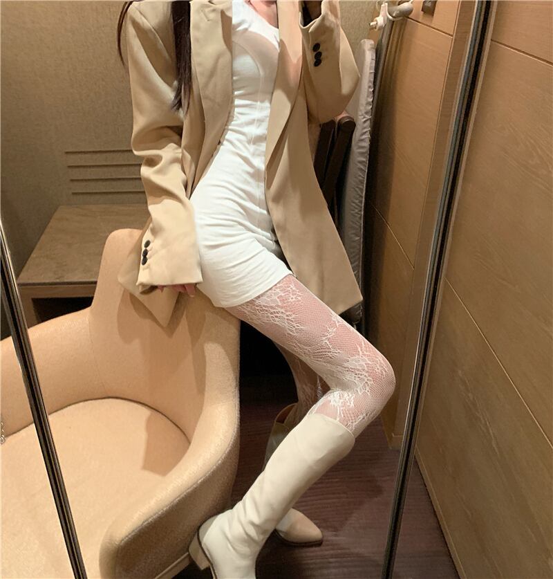 レースネットストッキング スプリングスタンダードパターンホワイトゆったり レトロ 春物 タイツ ソックス YY85255101658