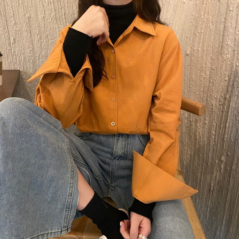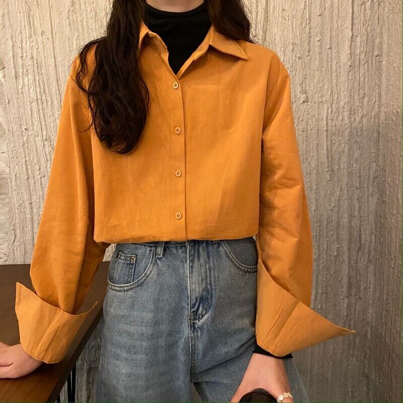 色:白いシャツのワンピース,ワンピースアプリコットシャツ,ローズピンクシャツシングル,スモーキーブルーシャツワンピース,暖かいオレンジ色のシャツワンピース,マスタードイエローシャツシングル,ホワイトベースピース,黒いボトムピース