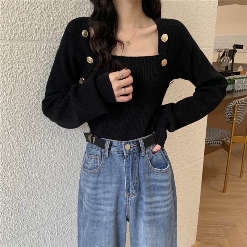スプリングゆったりシャツ ブラウス レディース韓国ファッションスタイルカラーショートニットセーター ジャケット 春物 スクウェア SPM75208144732