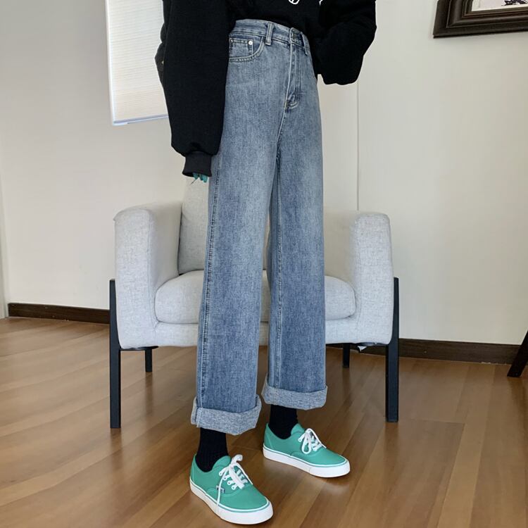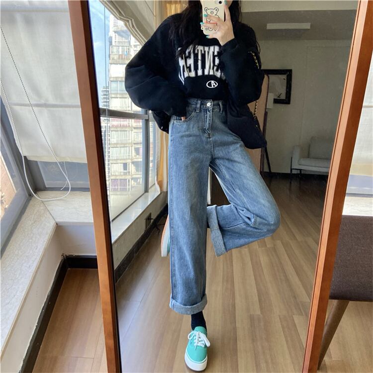 ハイウェストウェストジーンズ レディーススプリング秋物韓国ファッションスタイルパンツ ルーズ薄手 春物 オータム ウエスト SPM6701030763