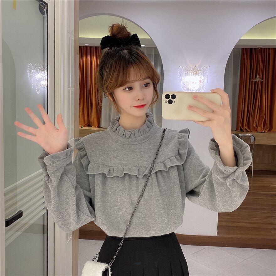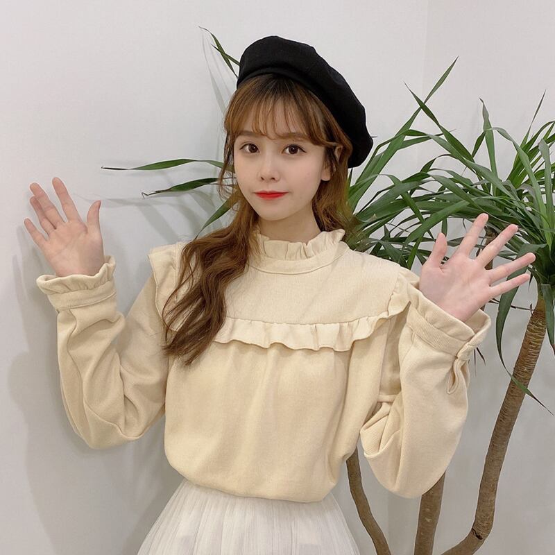 スプリング秋物韓国ファッションカラーブラウス プルオーバー セーター レディース ロング 大人ガーリー スウィート キュート カジュアル 春物 オータム スタイル 長袖 SPM60993442057