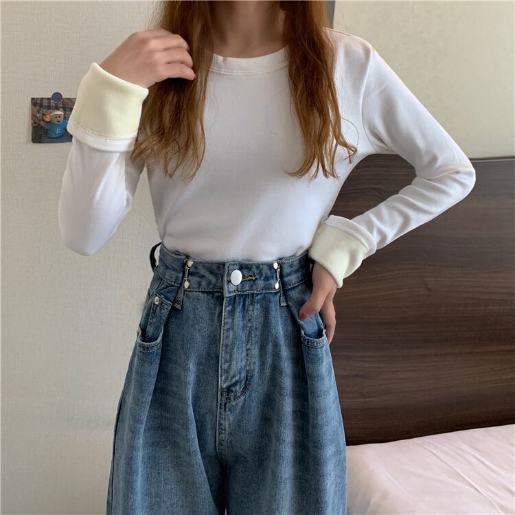 秋物ウィンターゆったりシャツ トップス 韓国ファッションラウンドネックスリム厚みTシャツレディース オータム 冬物 Oネック スタイル SPM24738746253