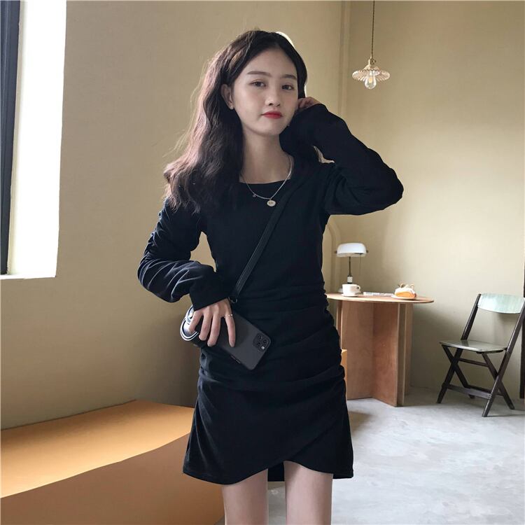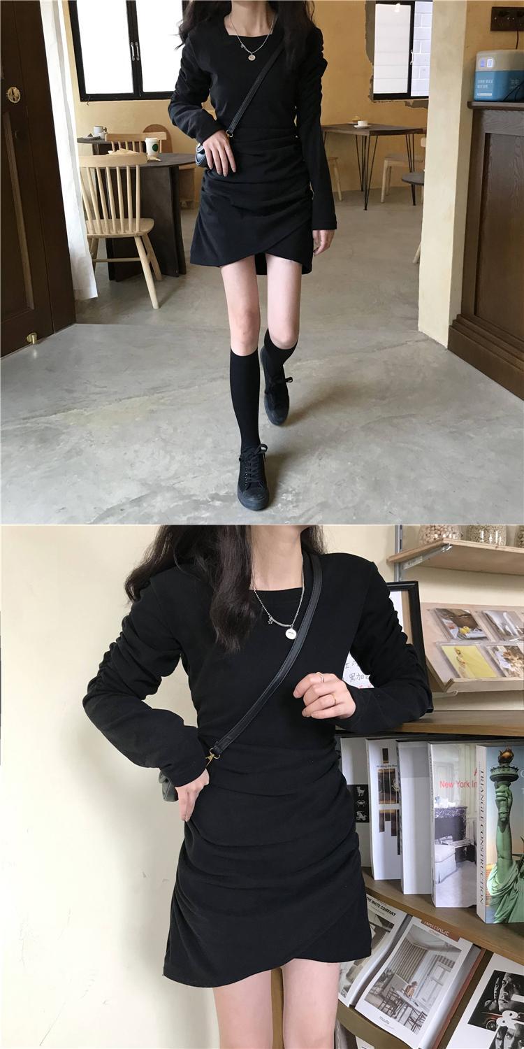 スプリングプリーツゆったりスカート 韓国ファッションスタイルブラックワンピースレディース 春物 スクウェア SPM99725121462