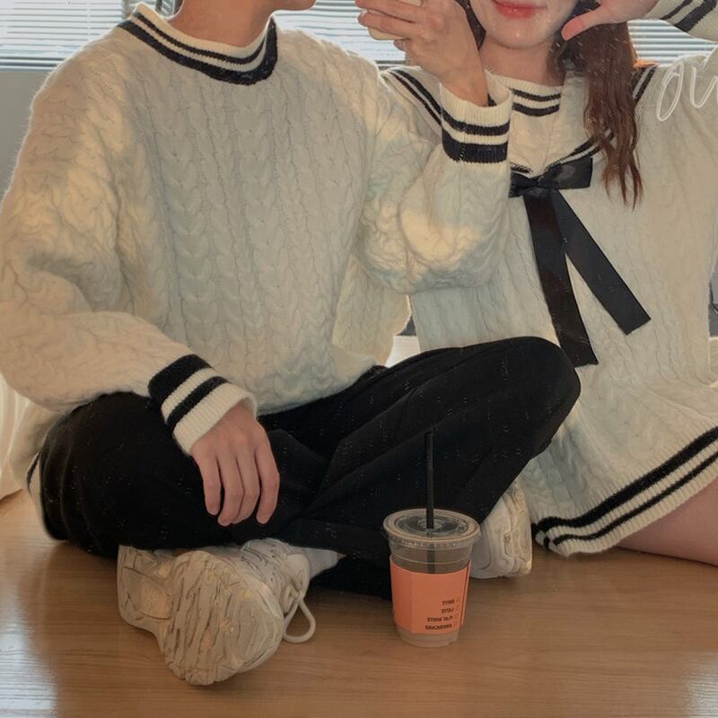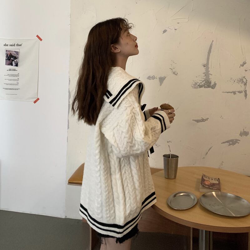 ネイビーカラーセーター レディーススプリング秋物韓国ファッションルーズホワイトコート 春物 オータム スタイル SPM29008596290