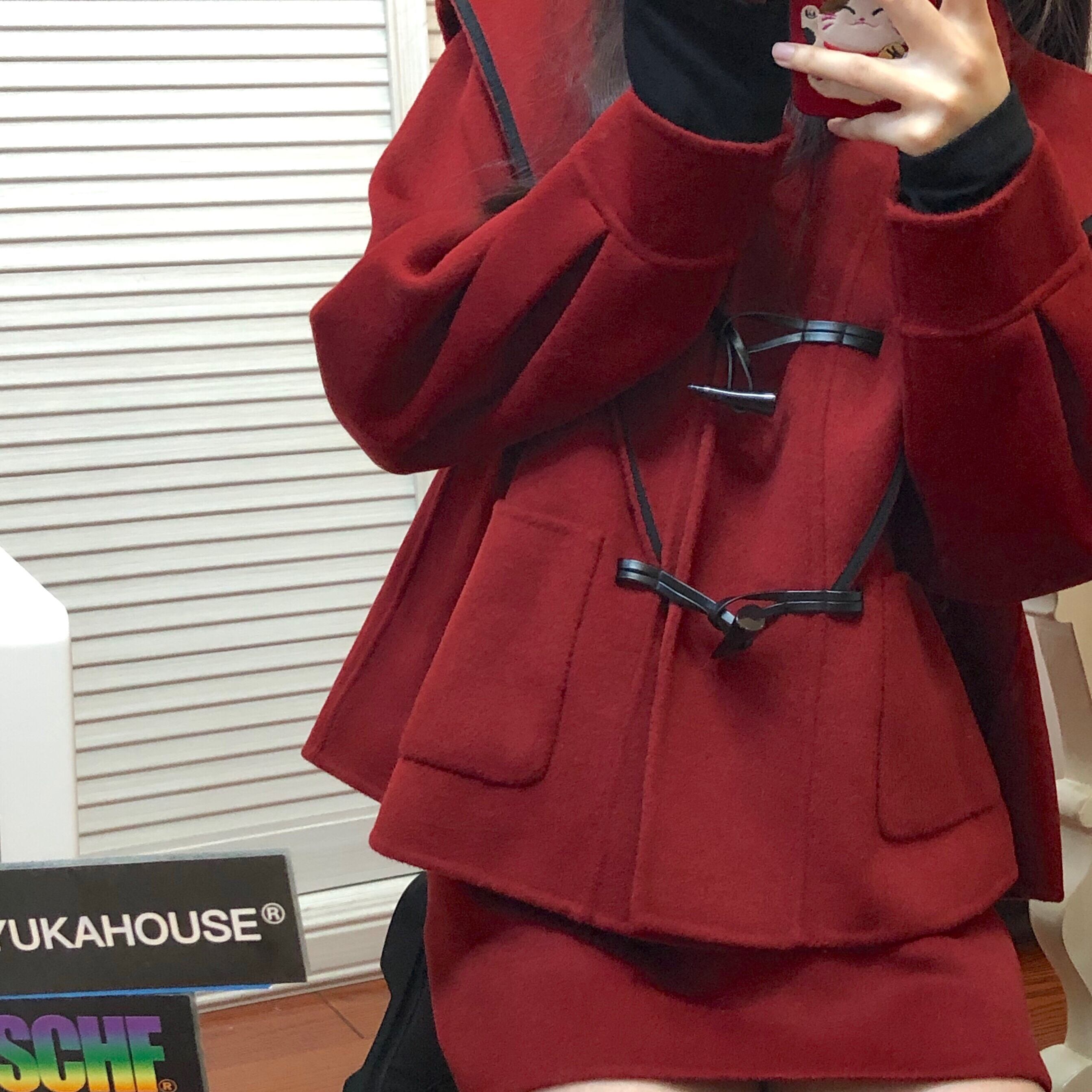 スプリングスタンダードレディースレッドボタンコート ハイウェストウェストスカート レトロ 春物 ウエスト SPM8142021544