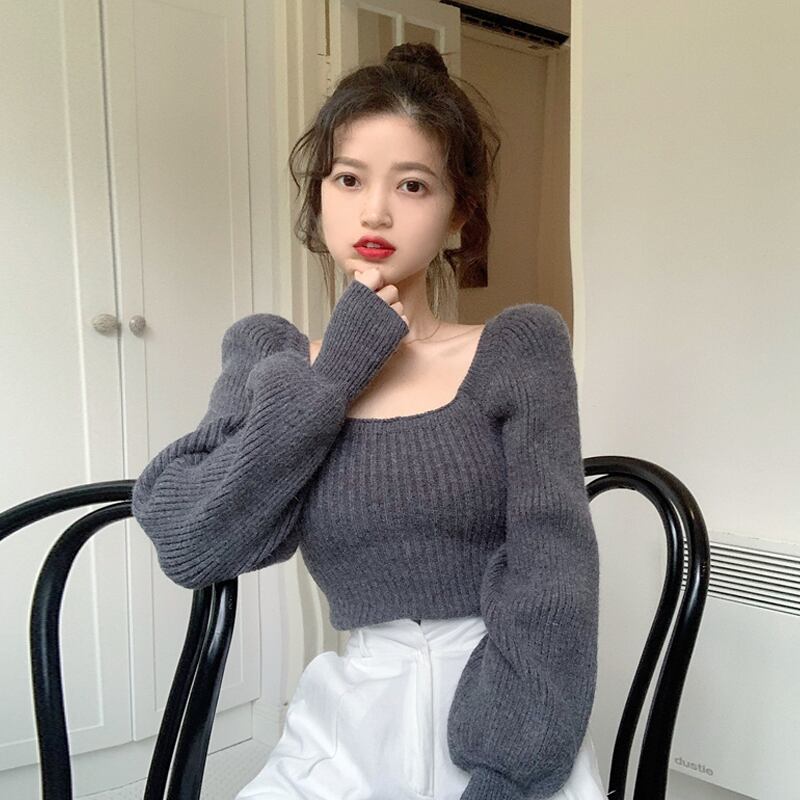 スリーブセーター スプリングスタイルカラーショート ランタンスリーブ 春物 スクウェア SPM48874376788