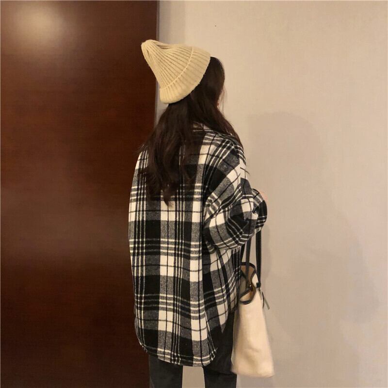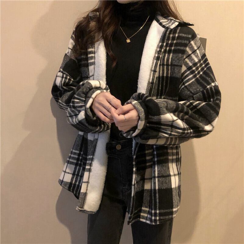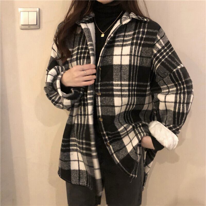 ウィンター韓国ファッション厚み格子柄シャツ 秋物ロングスタンダードスタイルジャケット レトロ オータム 冬物 SPM847461552