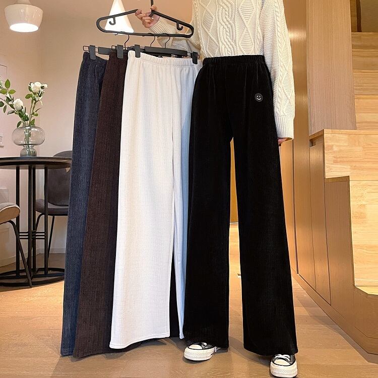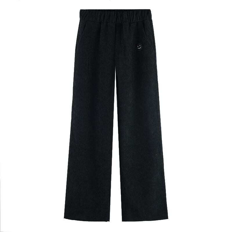 ブラックコーデュロイパンツ ウィンターカジュアルルーズハイウェスト 冬物 ウエスト SPM75575934470